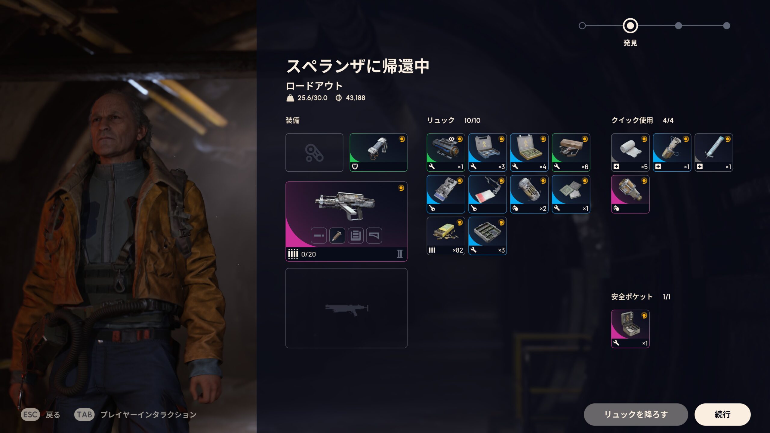 依頼をこなしながらスペランザのトレーダーと関係を築き、貴重な戦利品を地表から持ち帰ろう。持ち帰った戦利品はトレーダーに売るか、拠点で装備の作成や重要なアップグレードに利用できる。価値あるものは、簡単には手に入らない。