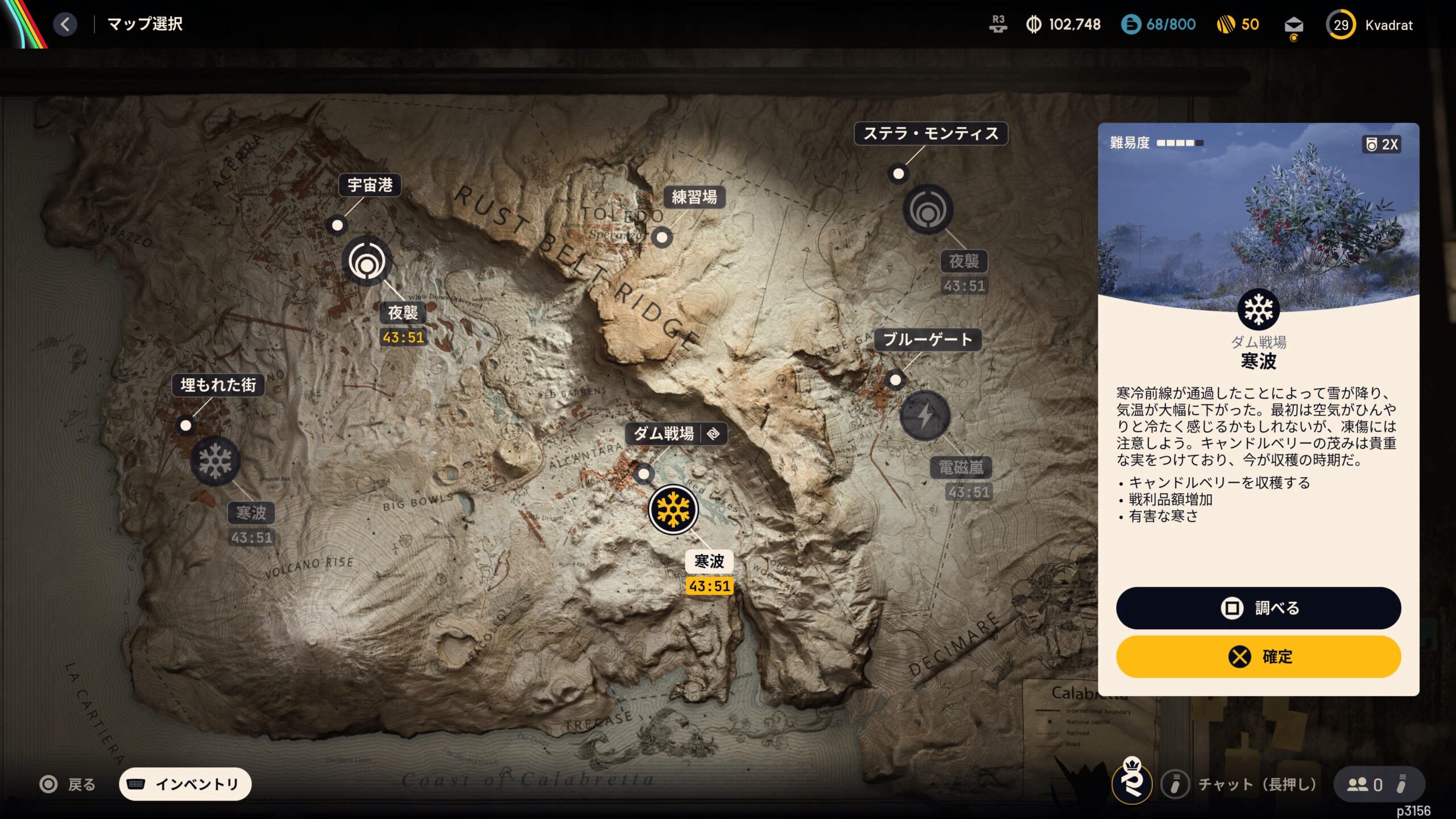 現実でも寒いのに寒波マップの自キャラもガチ寒そうでやっててつらい