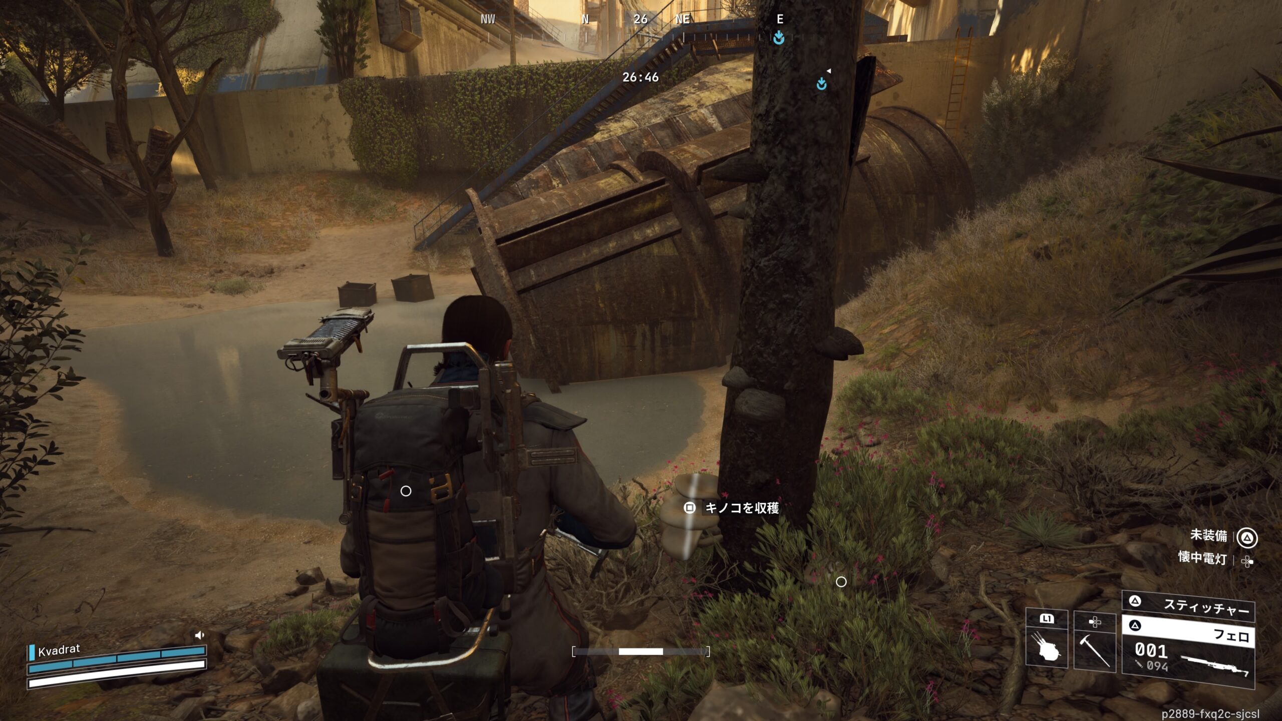 キノコは宇宙港の「塹壕ハッチ・東」から少し西にある木から確定で取れるで