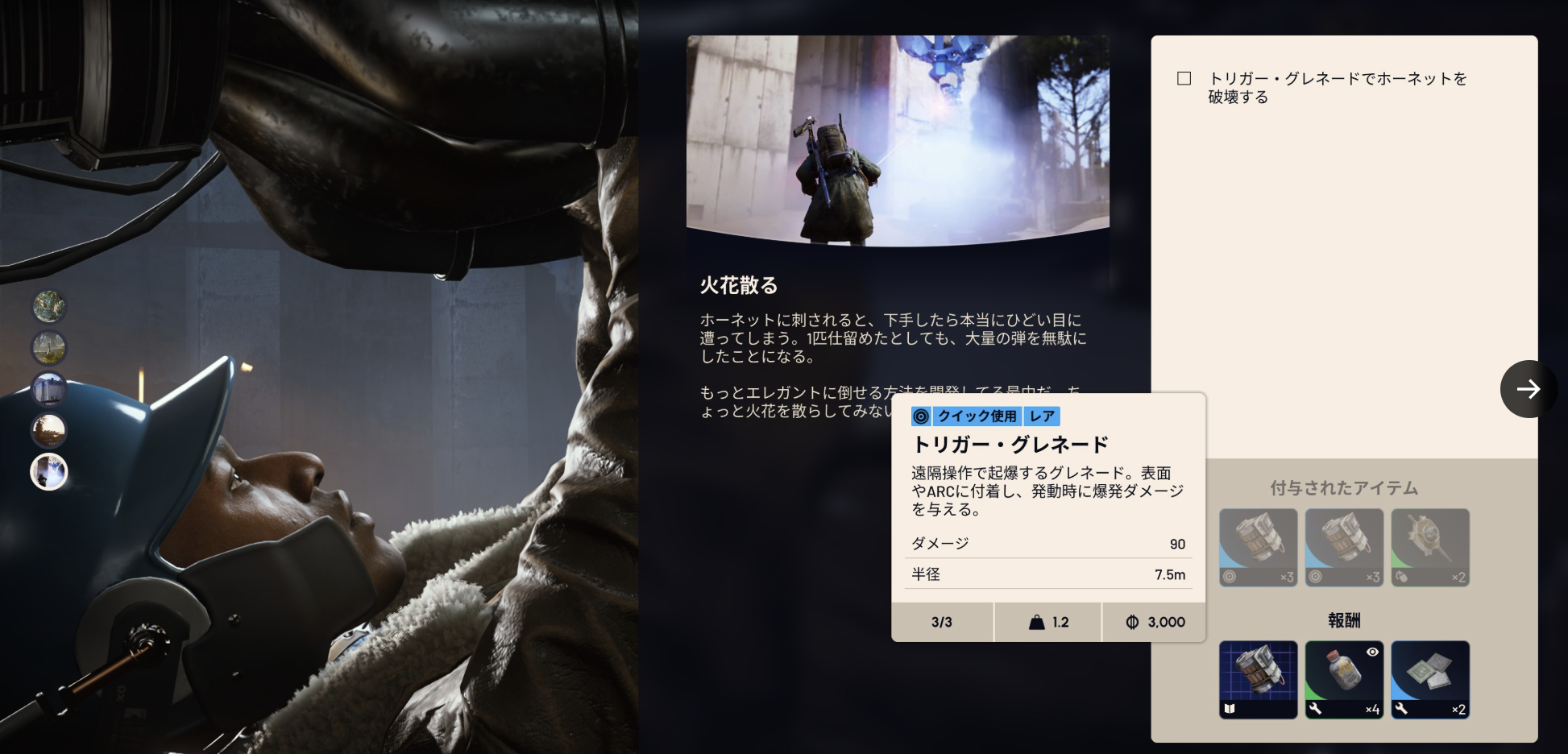 トリガーグレネードのクエストは敵の弱点というか攻略法のチュートリアルだと思うんだが、もう普通に撃ちますねという感想にしかならなくないかあれ