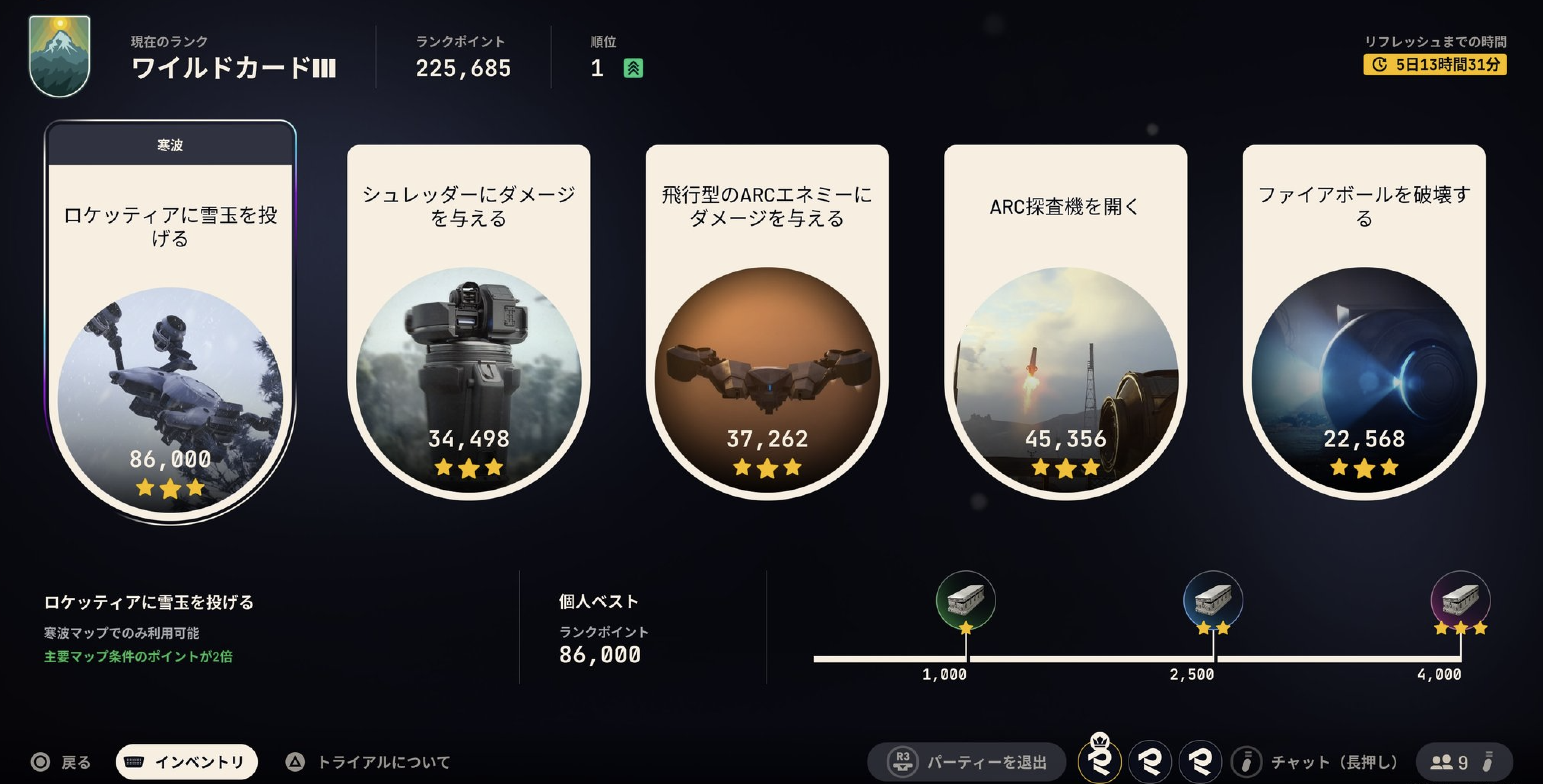 雪玉集めで撃たれロケッティア探すのに3マッチかかりガチ勢の妨害にあってもはやこのコンテンツPVPなのかPVEなのか分からなくなったわ