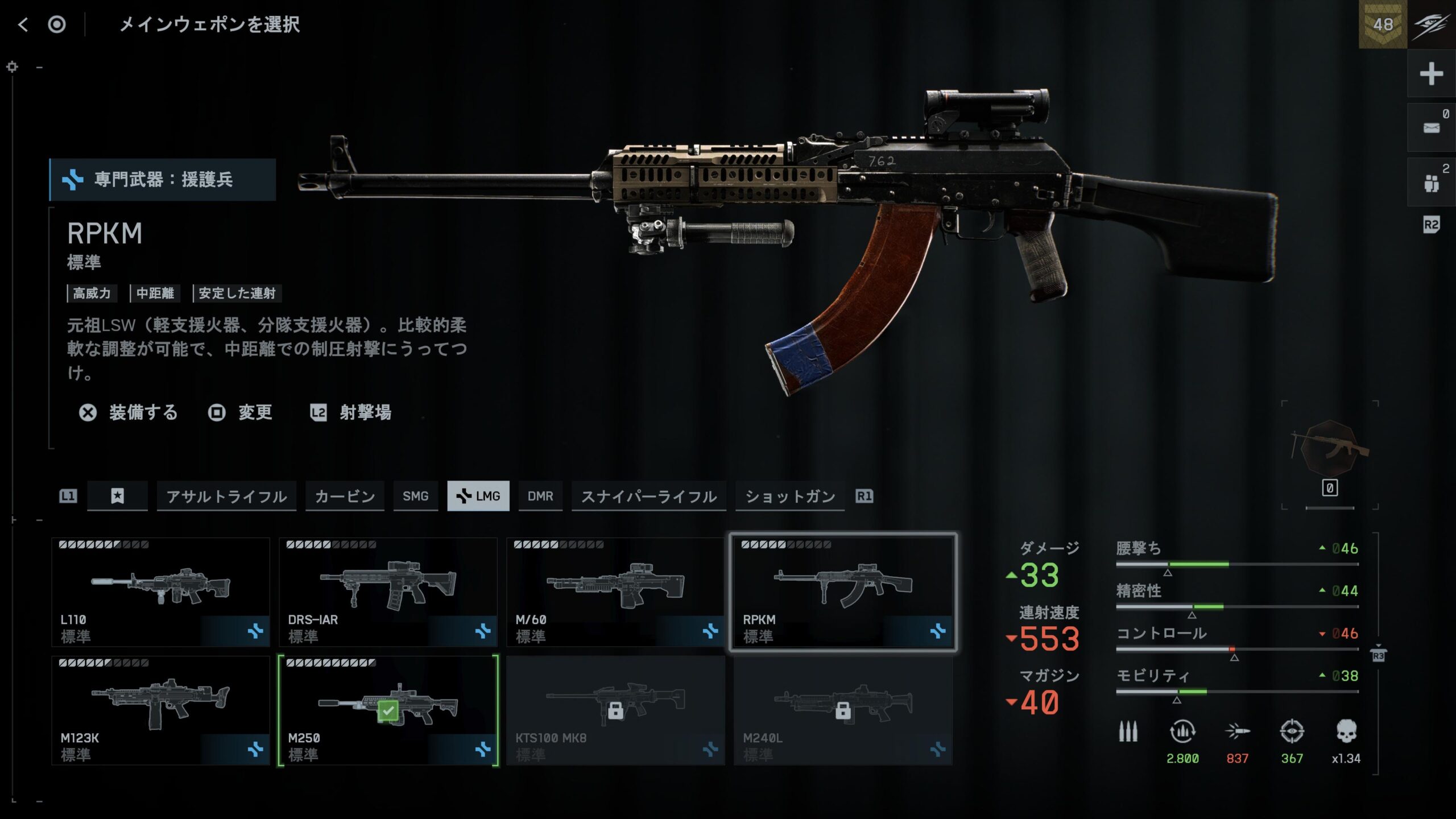 LMGにわかだけどAR感覚ならRPK、レーザー系が良いなら7つ目のやつとかおすすめ