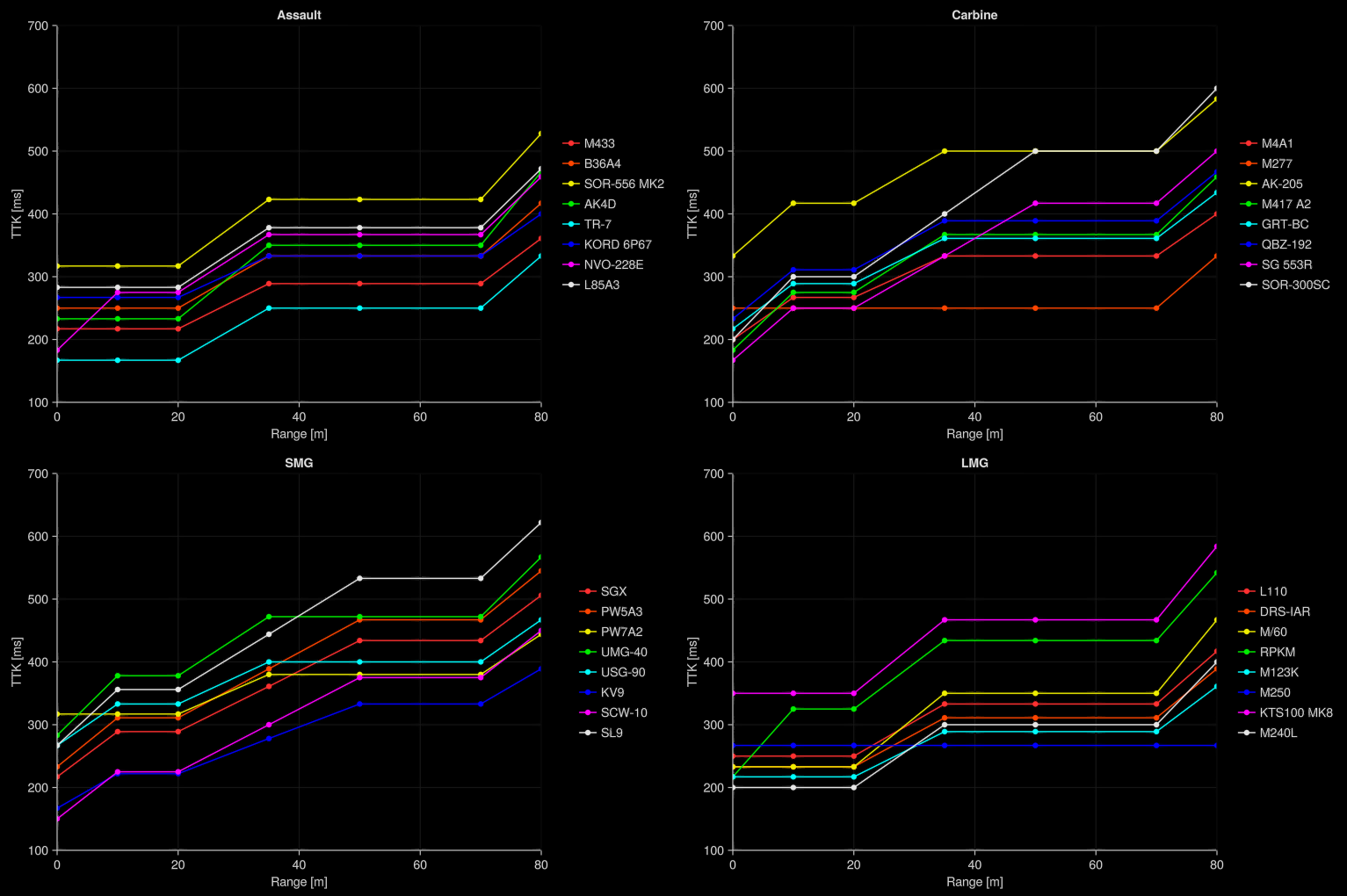 TTK表で判断するなら30~40m付近での撃ち合いがベストじゃない?