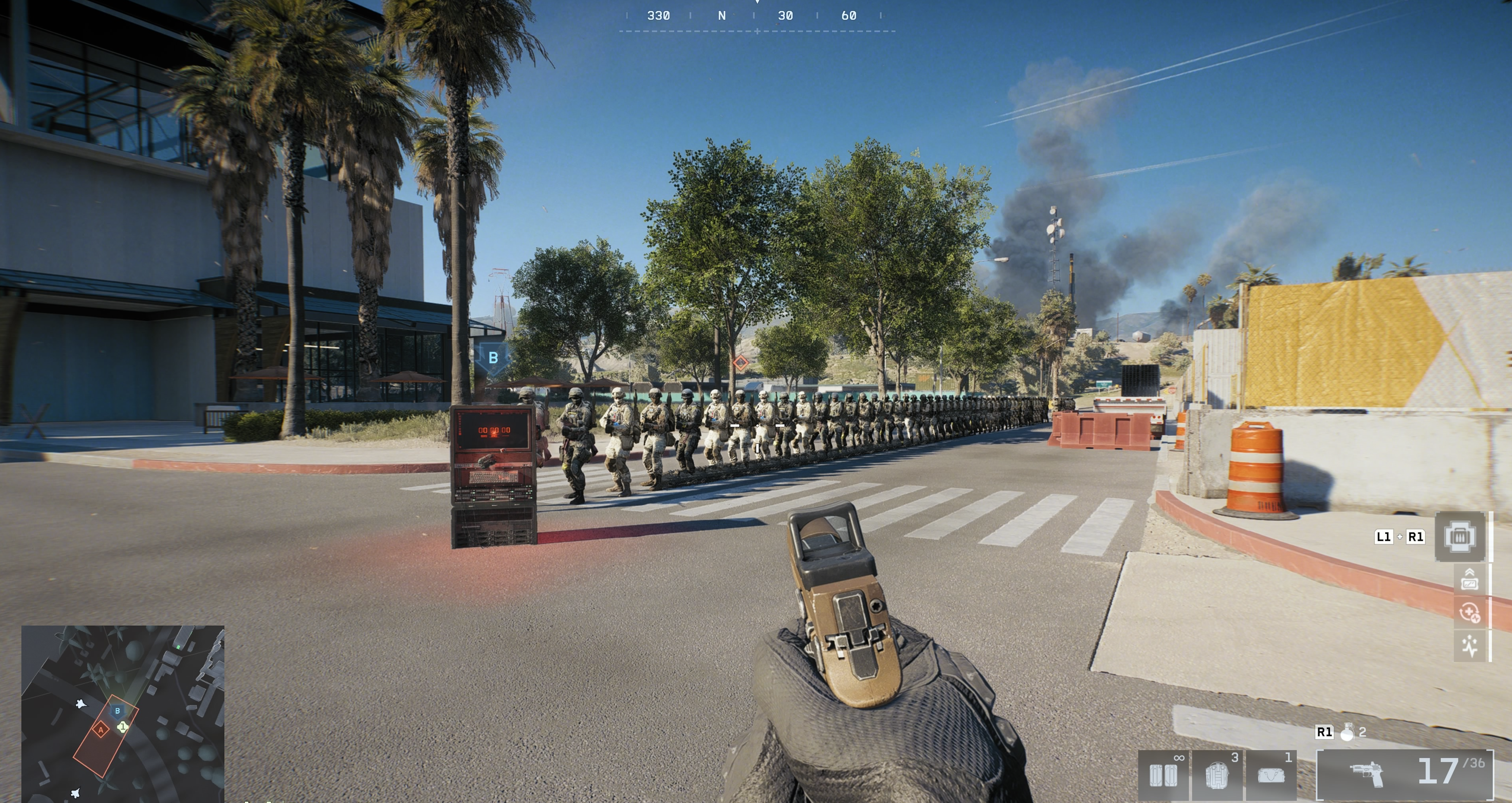 ブラックウェルフィールドは南カリフォルニアを舞台にした不気味な大規模オールアウトウォーフェアマップで、軍事施設と散在する農家が包囲され、燃え上がる地平線という息を呑む背景の中にあります。