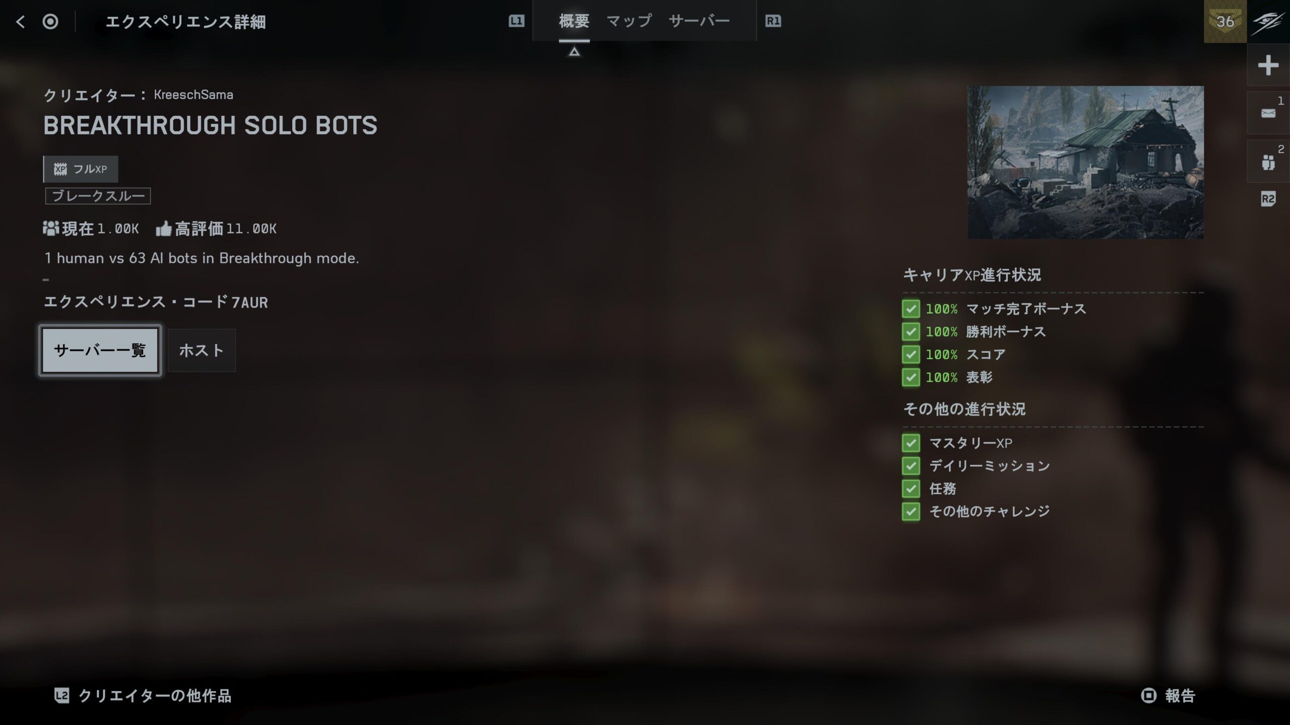 エクスペリエンスでマップとモードを選択、ブレイクスルーとオペレーションファイアストームフィルターを適応(これやらないと検索に引っかからない)
