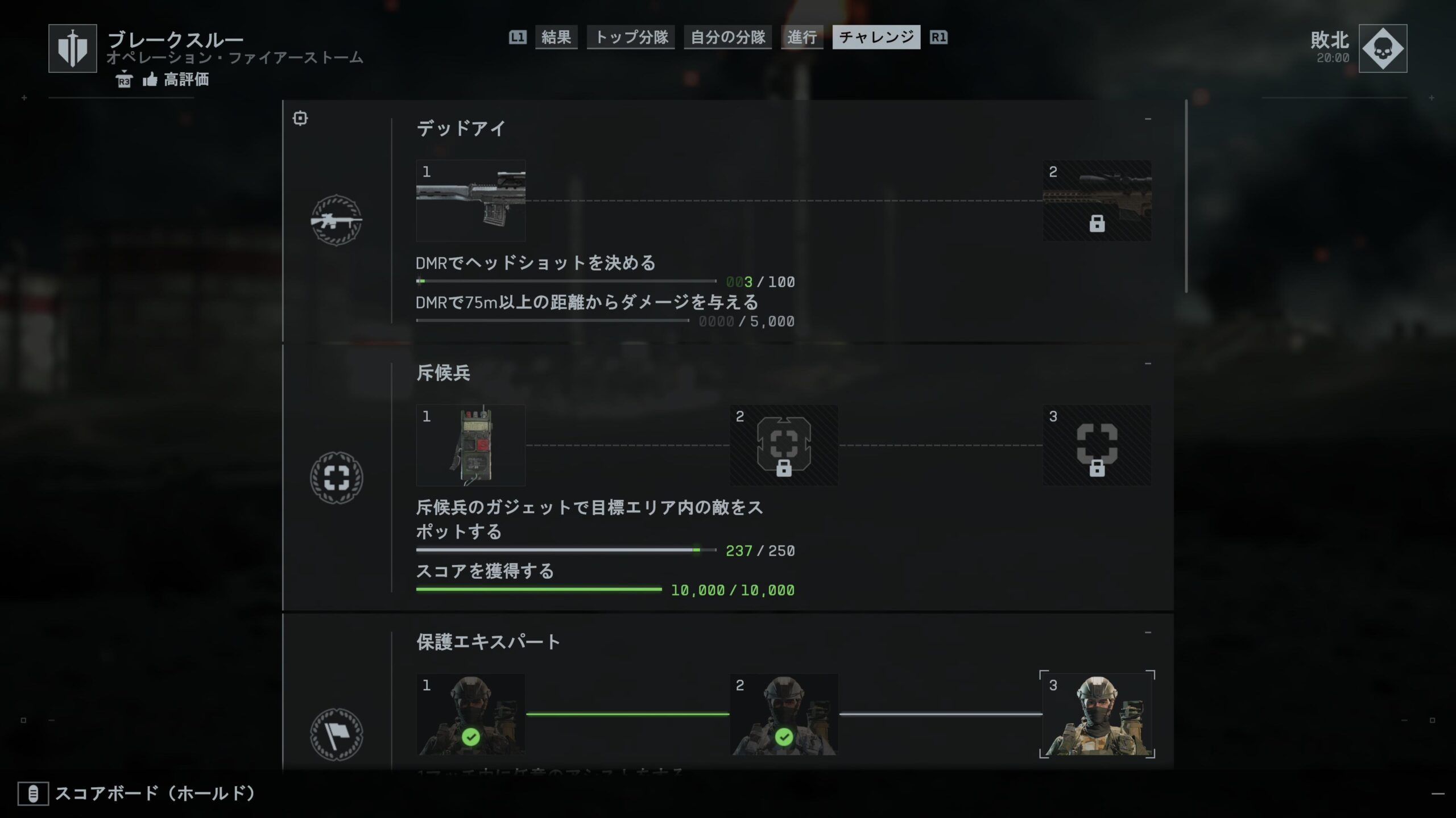 チャレンジの進行は元から止められてなくて、止められたのは武器のアタッチメント解放だけ?