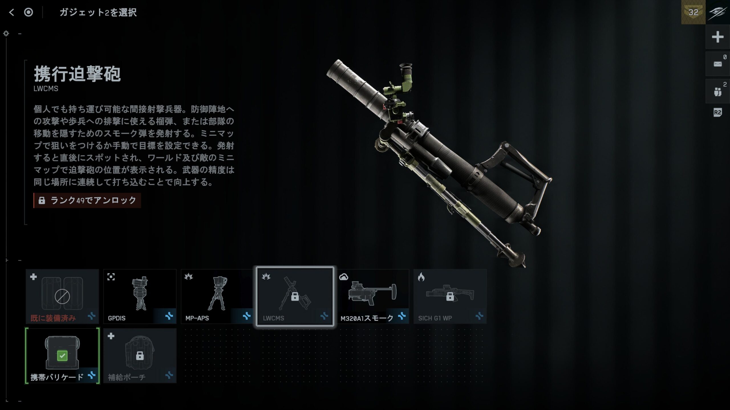 個人的感想言うと階級49で解放した迫撃砲は初期装備で良かったな
