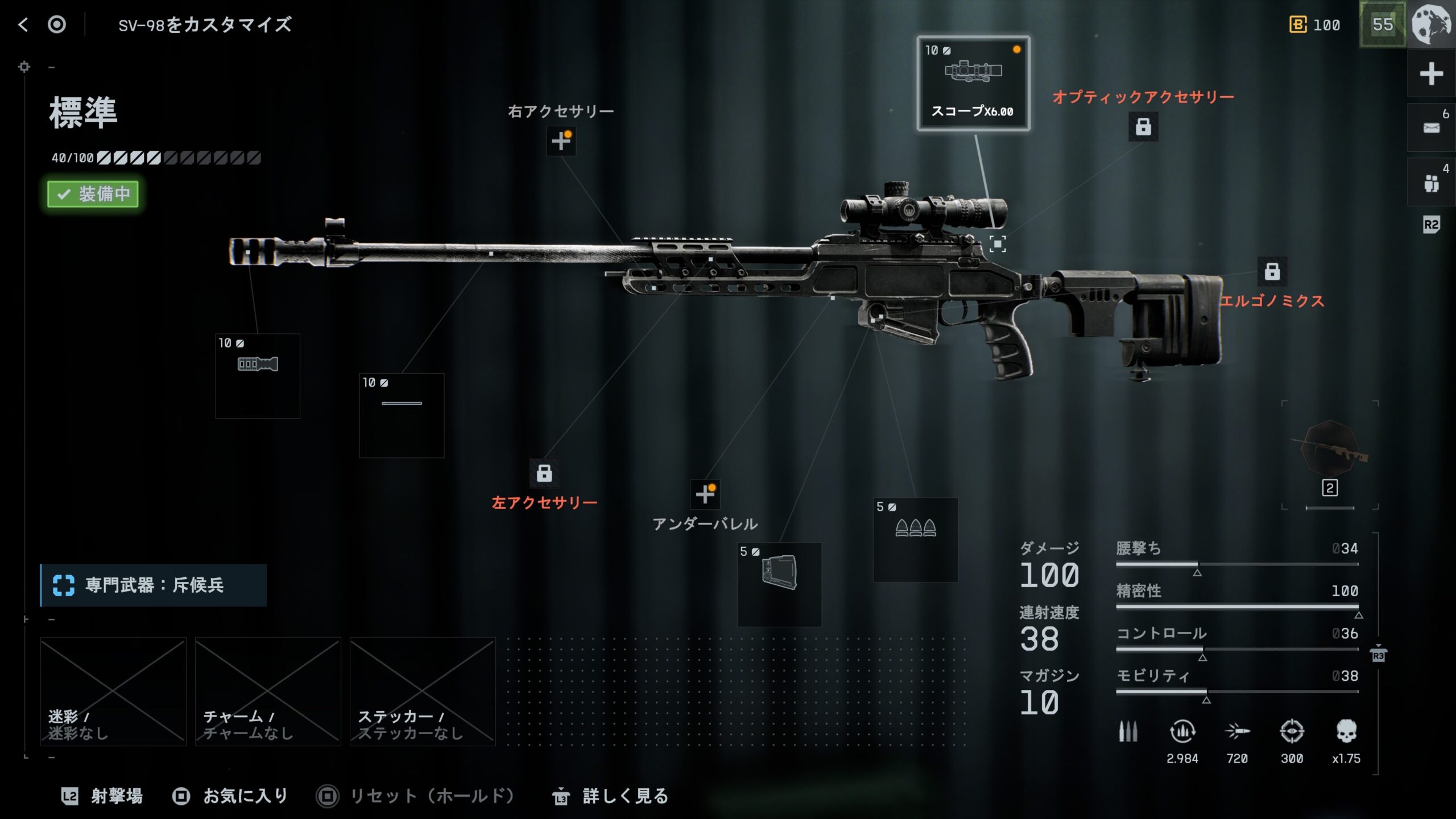 今作ではスコープの反射は倍率によって光る光らないが一切ありません。SRでアイアンサイト以外を使うと一律で同じ反射光が出ます。つまり、等倍サイトでも10倍スコープでも全く同じ反射光になるということです。