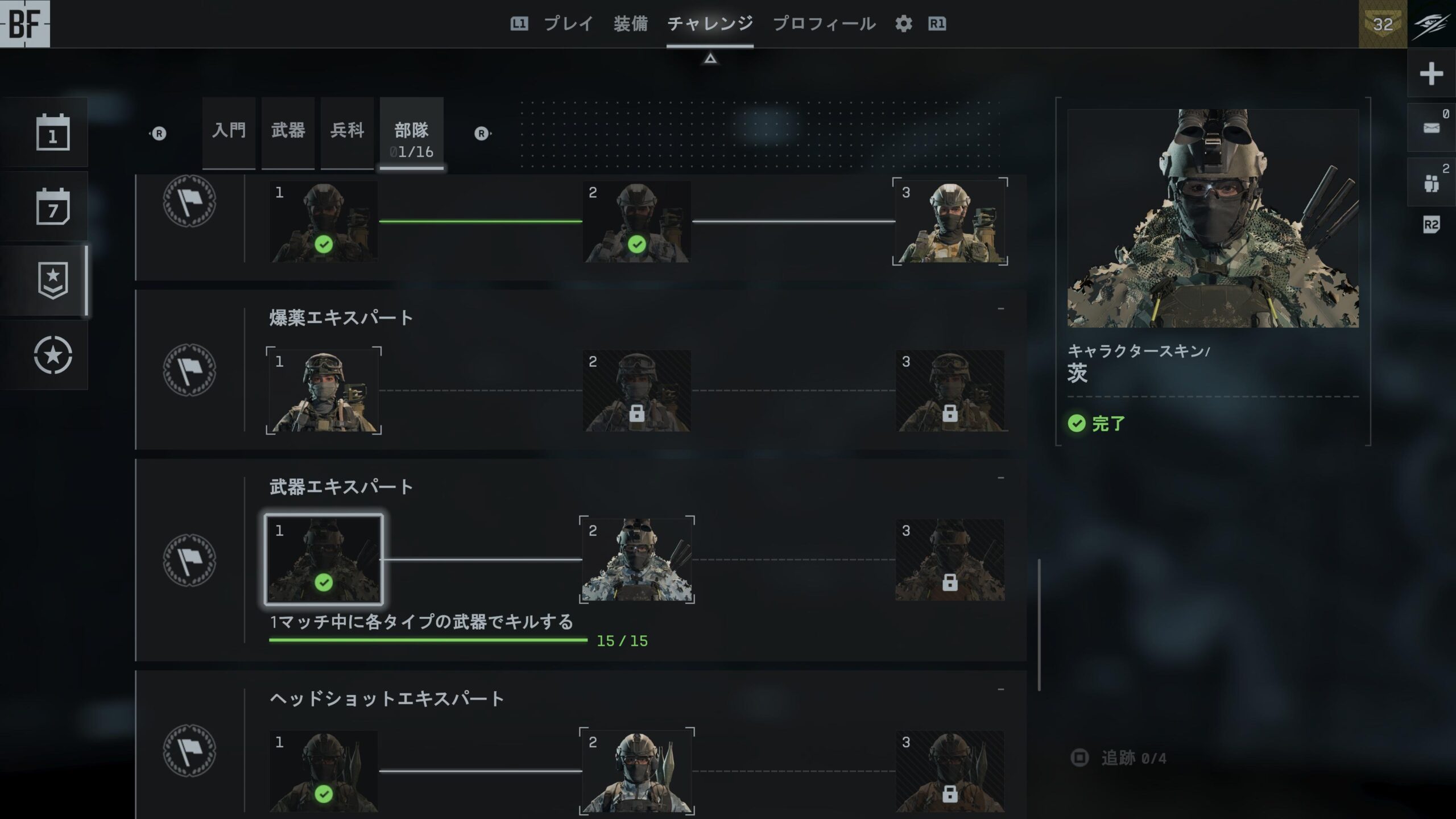 一部チャレンジは意識しないとだけど。流石にビーコンは意識して終わらせた。c4も斥候兵で出撃を意識した位で勝手に使えるようになってた。