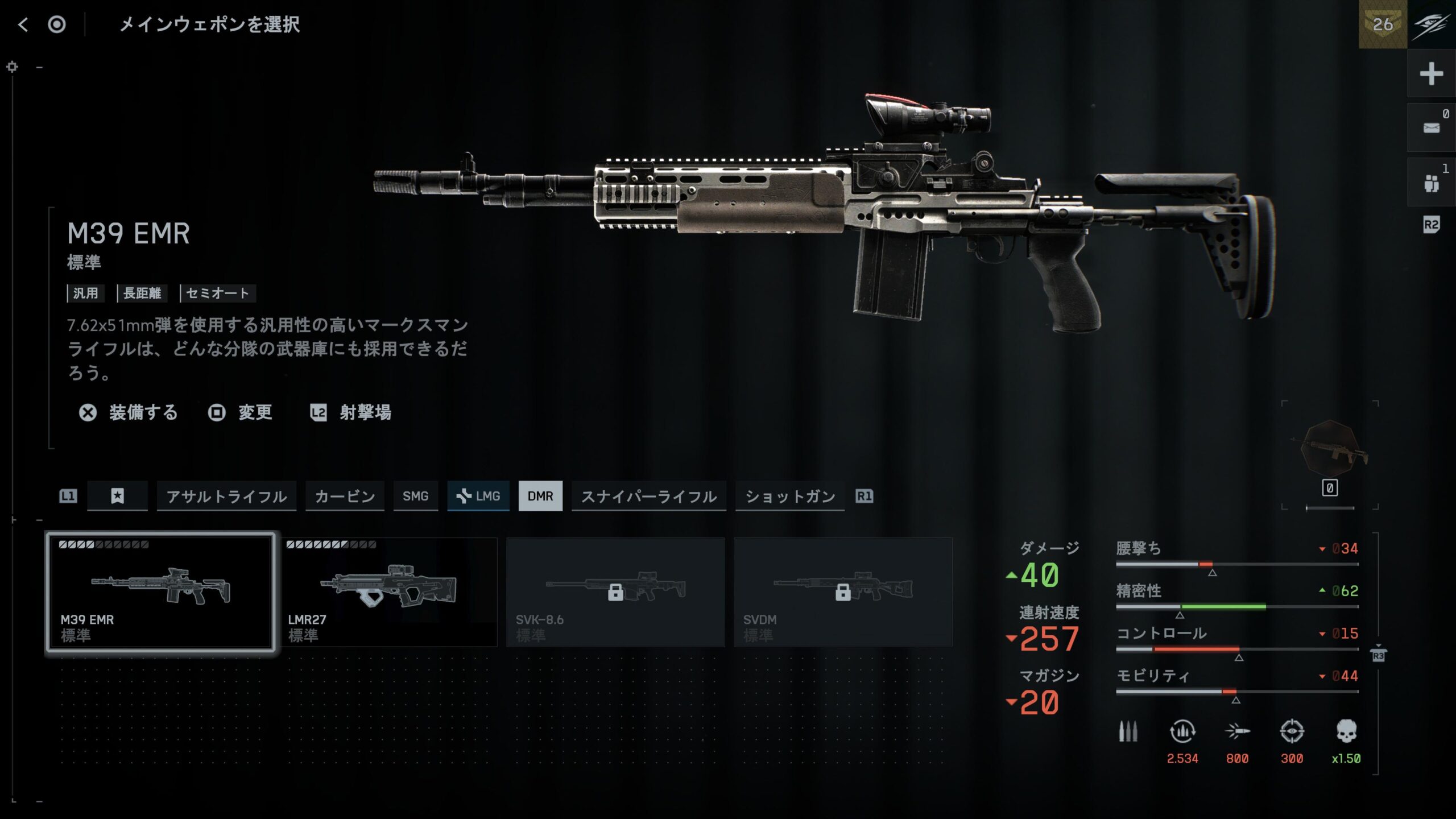 初期DMR、デフォだと最小ダメージ33だけどバレル変えたら34ダメージになって3確になるから