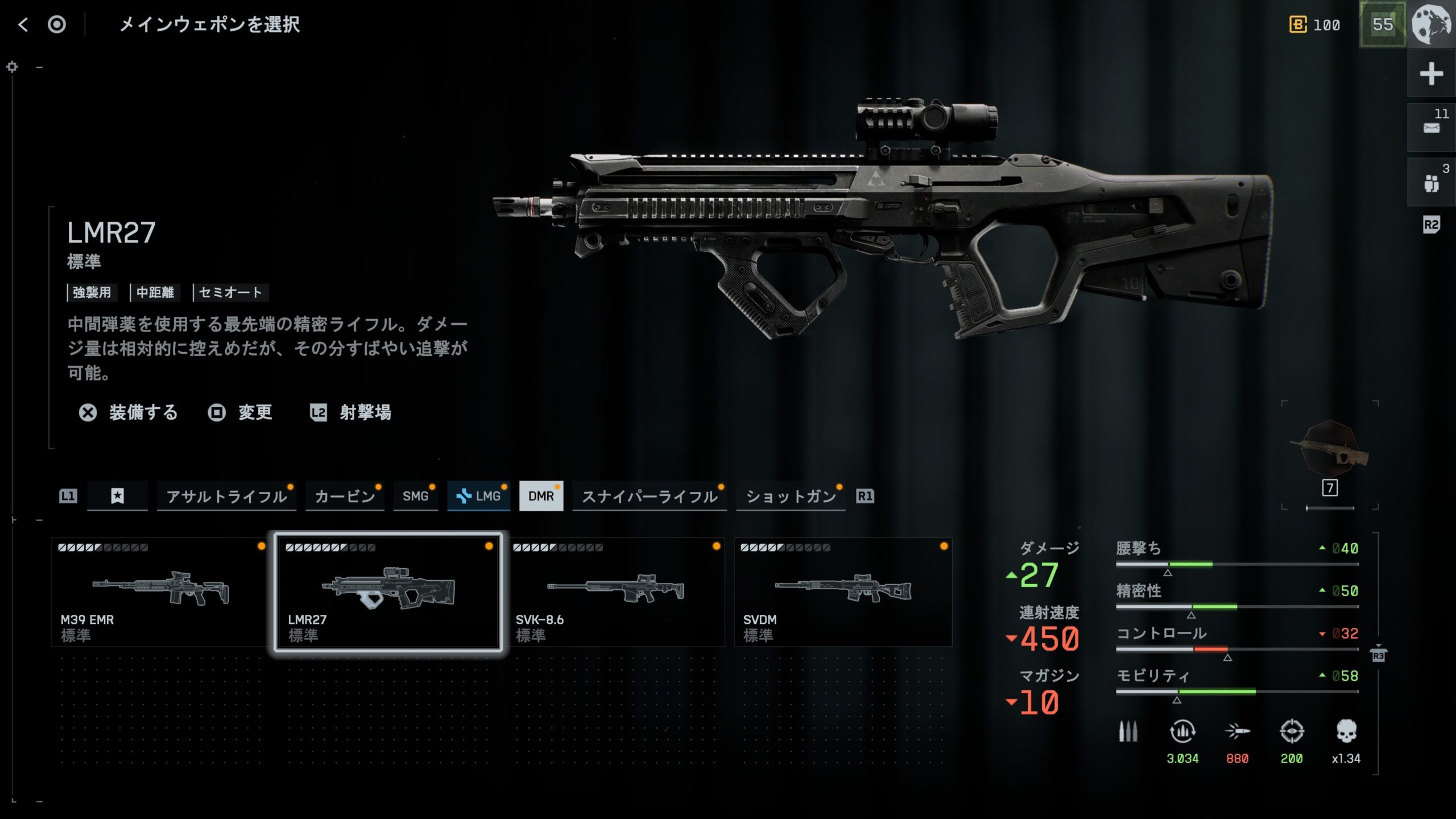 武器画面からZでいける射撃場で4つ目に遠いターゲットをフルオートでいけるくらいのかな