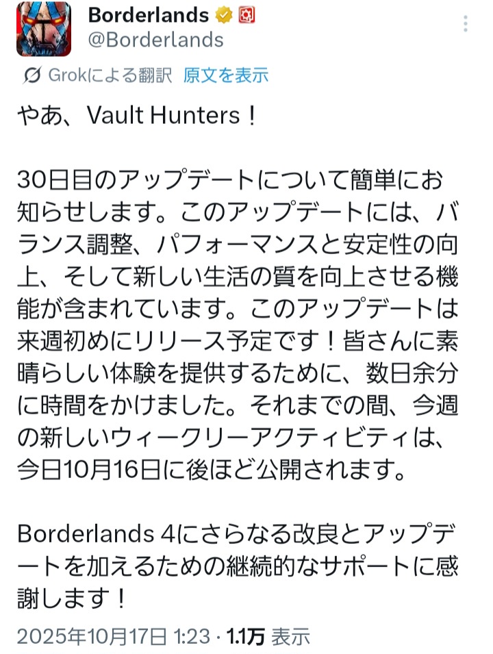 アプデ今日じゃなくて、来週の初め(具体的な日付け無し)らしいぞーwww