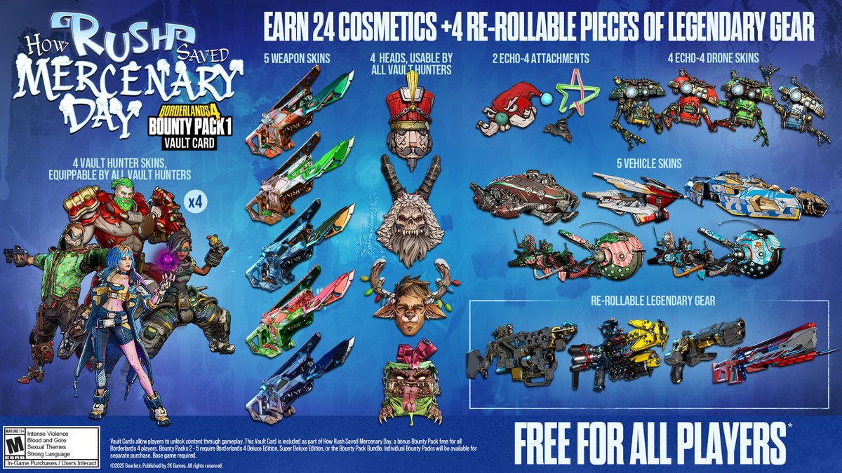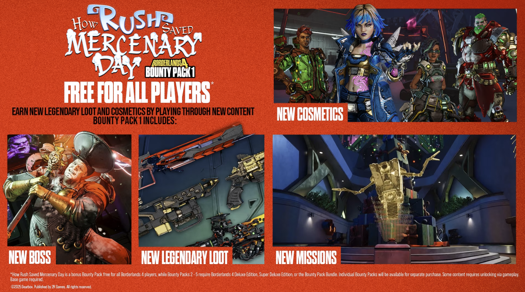 Gearboxは2025年11月21日、『ボーダーランズ4』のDLC第一弾「ラッシュの傭兵記念日物語」を全プレイヤー向けに無料配信することを発表しました。