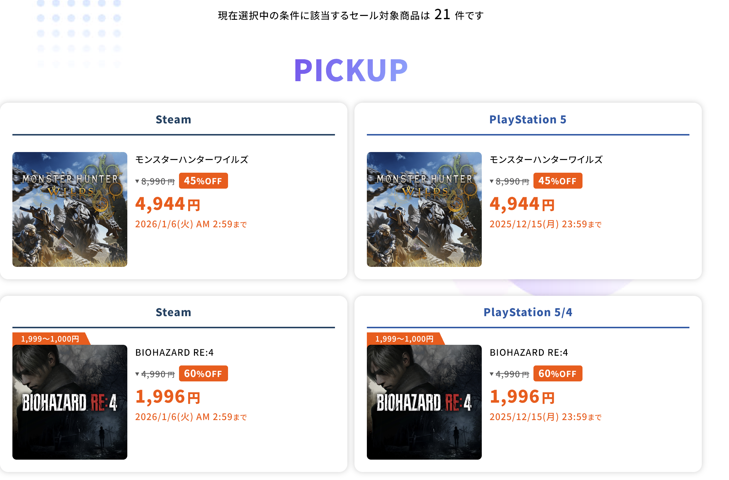 「CAPCOM WINTER SALE」開催中! PS5版 バイオヴィレッジ 998円、RE:2/RE:3/7/ 997円、RE:4 1,996円。どの作品がおすすめ?(〜12/15)