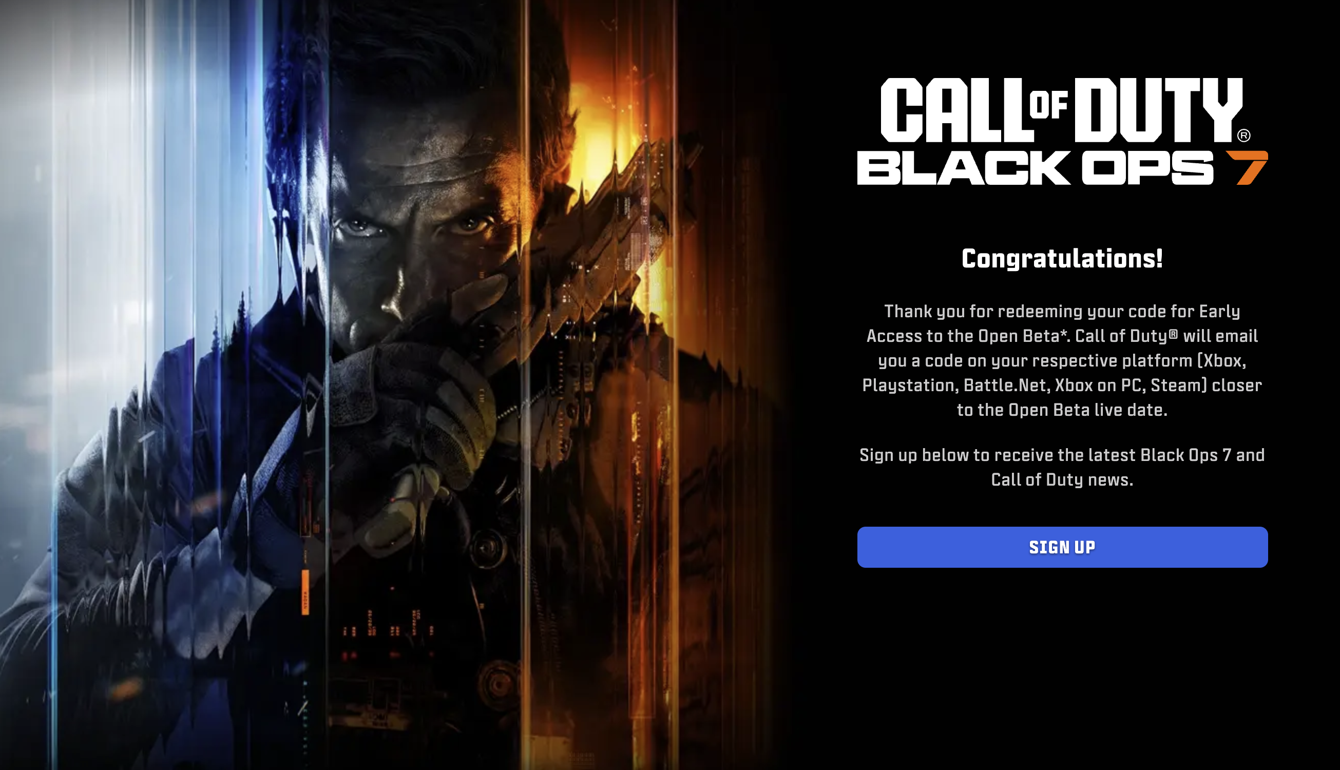 オープンベータは10月6日月曜日午前2時(日本時間)に全プラットフォームで全プレイヤーを対象として開始され、早期アクセス期間後も継続してさらに72時間行われます。Black Ops 7ベータは10月9日木曜日午前2時(日本時間)に終了する予定です。