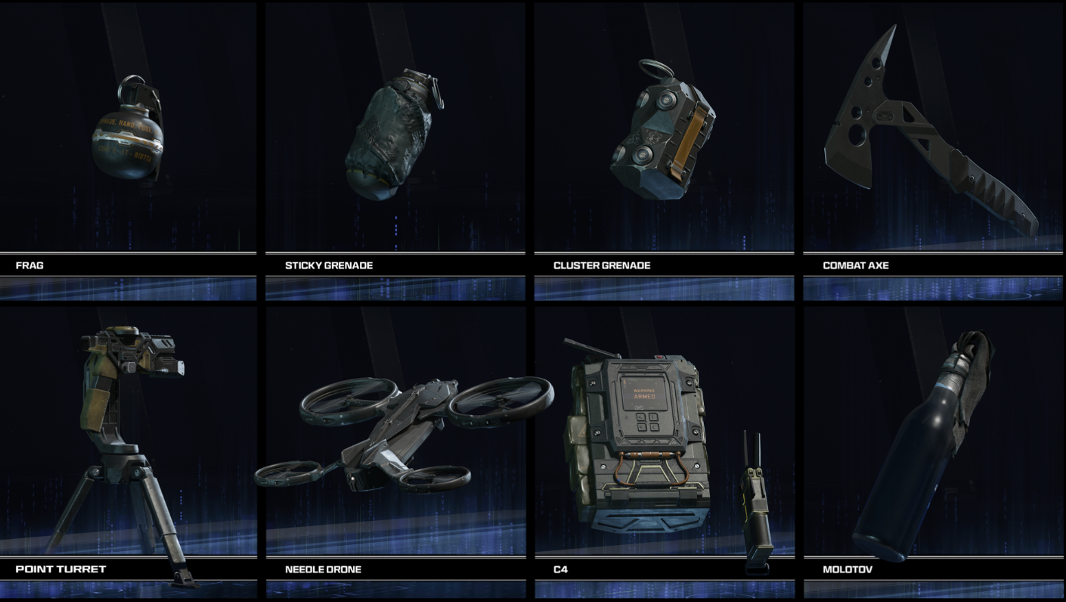 - EMPグレネード(電子機器を無効化または破壊します。装備、スコアストリーク、敵プレイヤーに効果があります。)