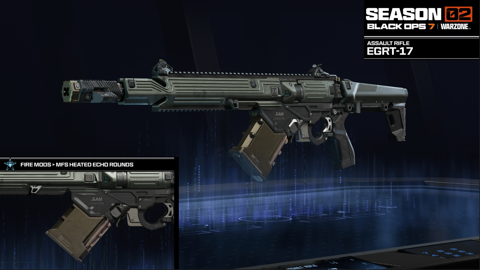 発射速度はPeacekeeper MK1に次ぐ速さを誇るEGRT-17 アサルトライフルは、高い連射性能で弾を撃ち出し、胴体・ヘッドの双方に対して優れたダメージを与える。さらに、弾丸が跳弾する特性により、跳ね返りで敵を捉えることも可能だ。高い連射速度を持ちながらも反動制御は非常に正確で、その代償としてリロード速度はやや遅めとなっている。素早く、かつ正確な射撃で敵を倒したいオペレーターにとって、射撃場に持ち込みたい一本だ。