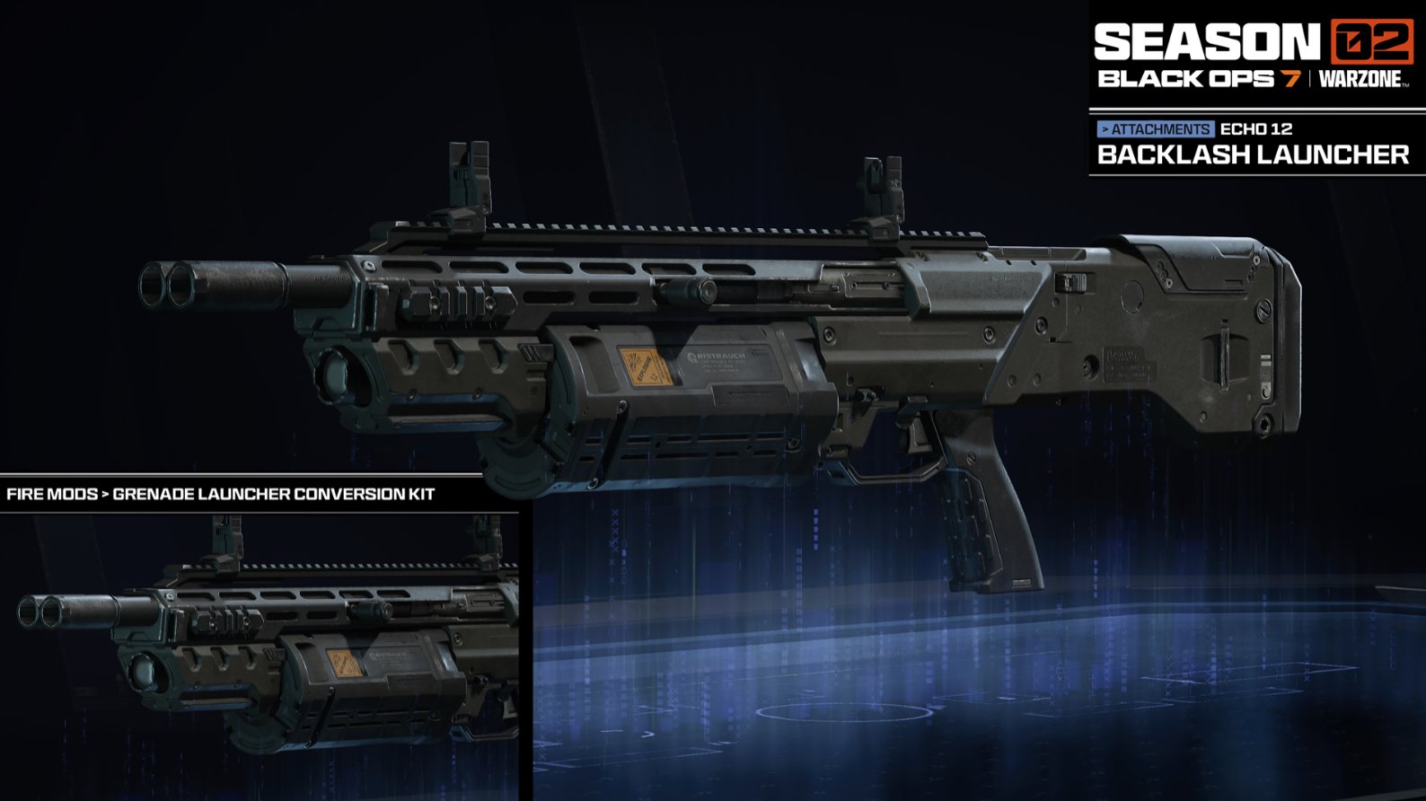 ポンプアクション式グレネードランチャー。グレネードは固体表面に張り付き、遠隔起爆が可能。ADS(照準射撃)は不可。