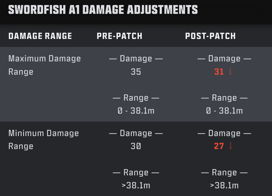 Swordfish A1はここ数週間、明らかに性能が出過ぎていました。これはバースト武器の設計上の難しさをよく表しており、その性能は「1バーストでキルできるかどうかの安定性」に大きく左右されます。Swordfish A1は設計上、安定性を重視している一方で、同系統のM8A1よりも発射速度が遅く、より慎重な運用が求められる武器として位置付けられています。