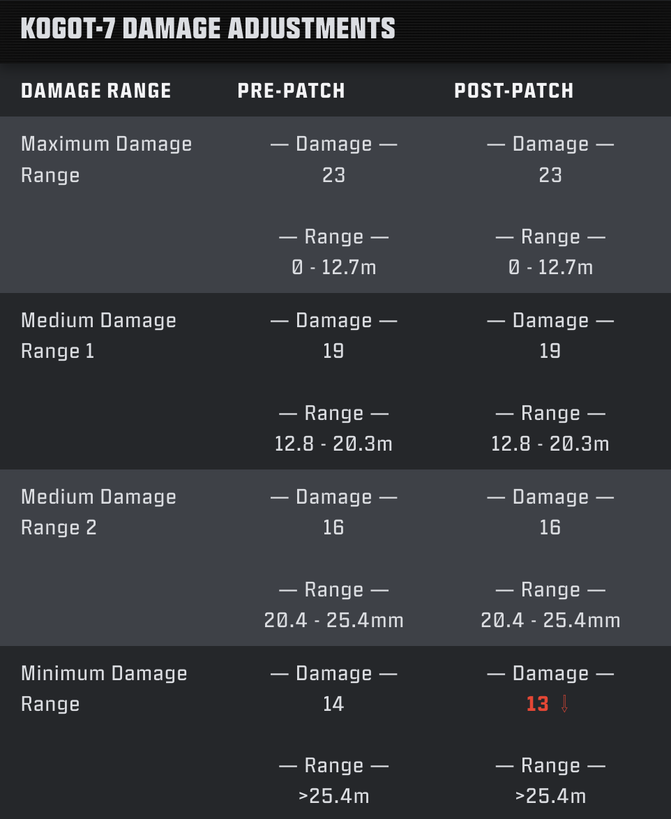 - エイムダウンサイト(ADS)時間のペナルティを15msから20msに増加。