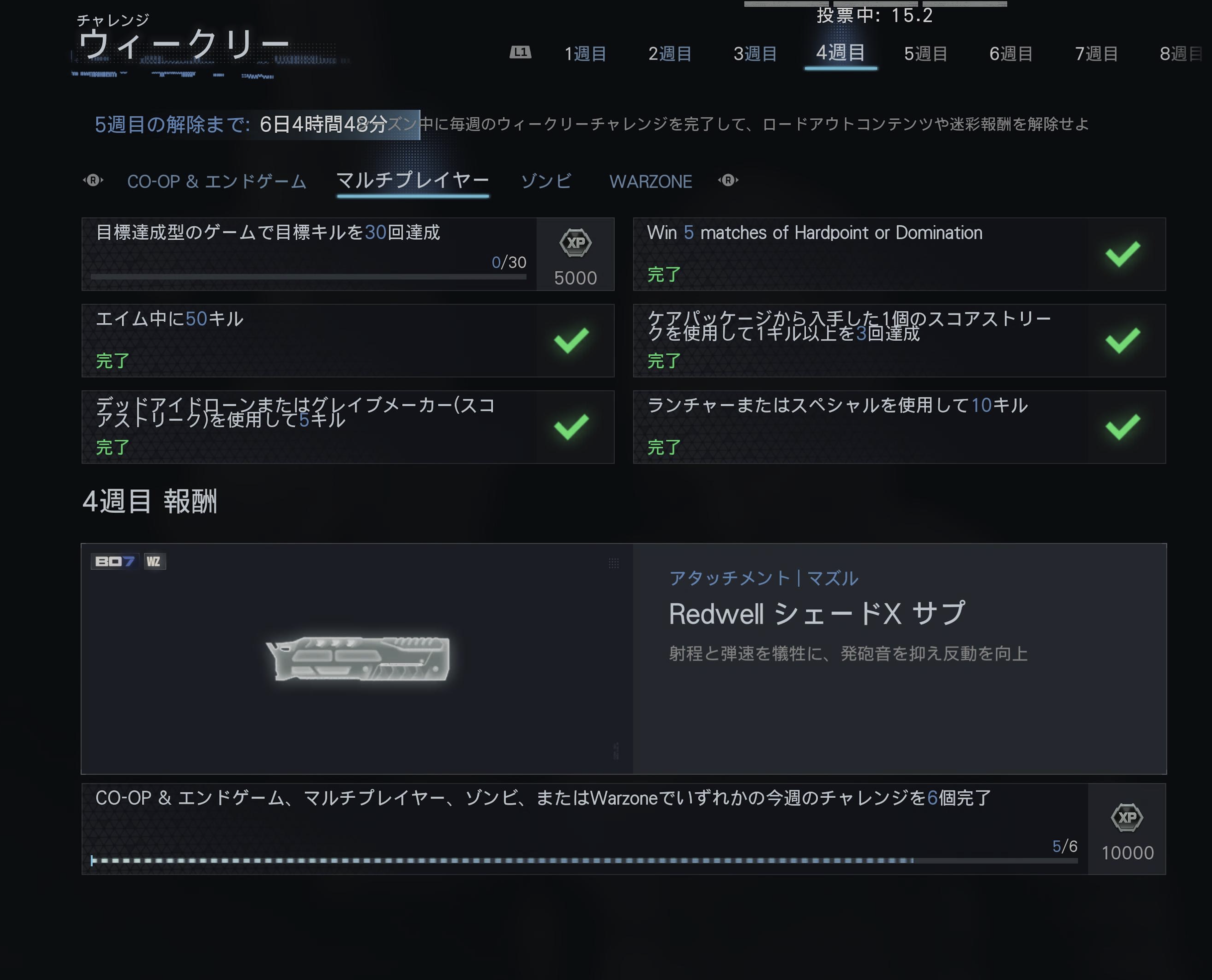 ウィークリー報酬の解除条件はトータルで6個のチャレンジをクリアだからエンドゲームなり行くのが手っ取り早い