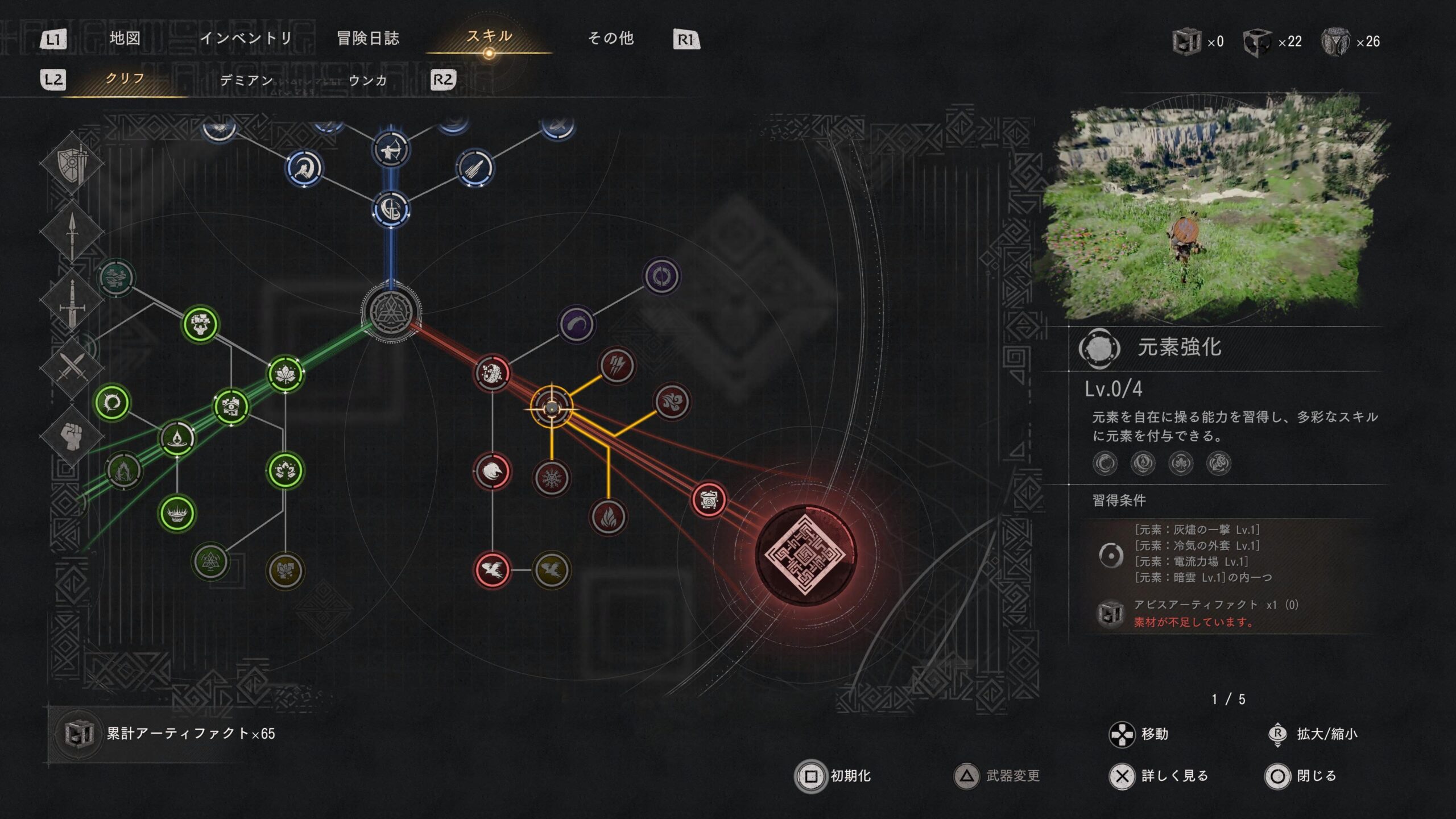 『紅の砂漠』9章以降は敵が強くなるため元素強化取得のススメ。
