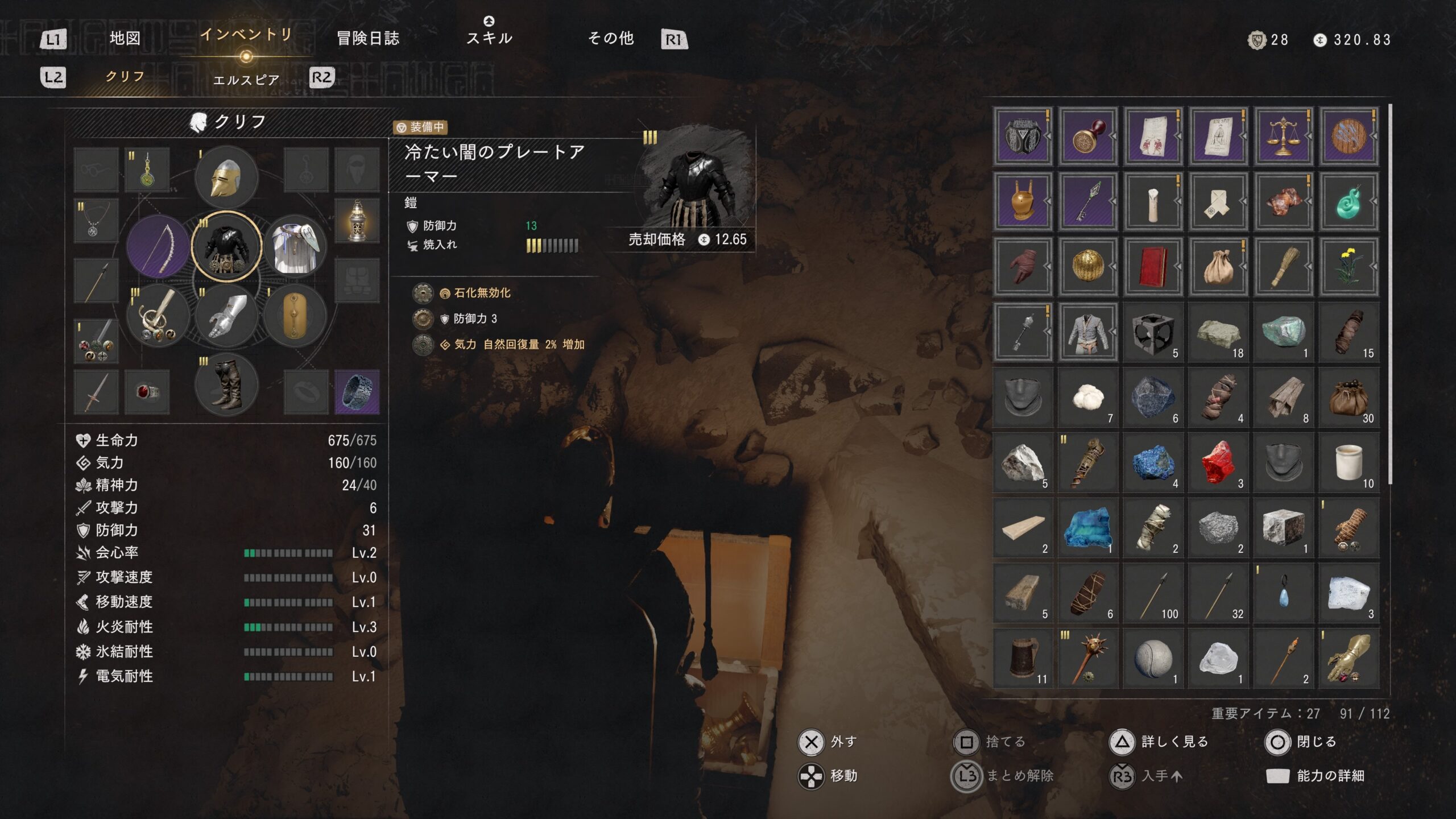 宝箱の中に「冷たい闇のプレートアーマー」