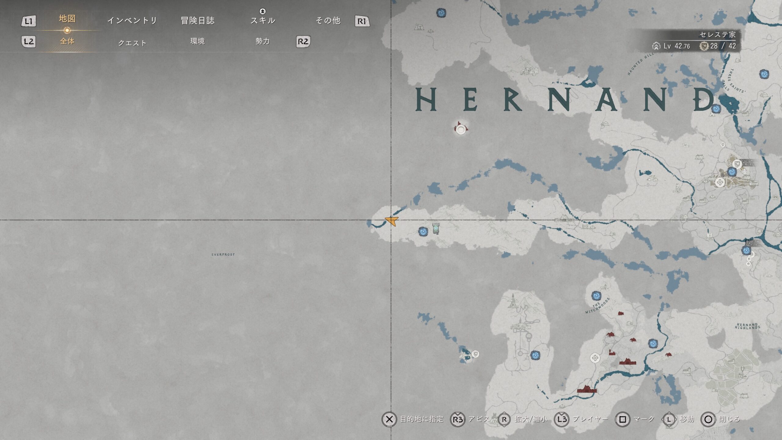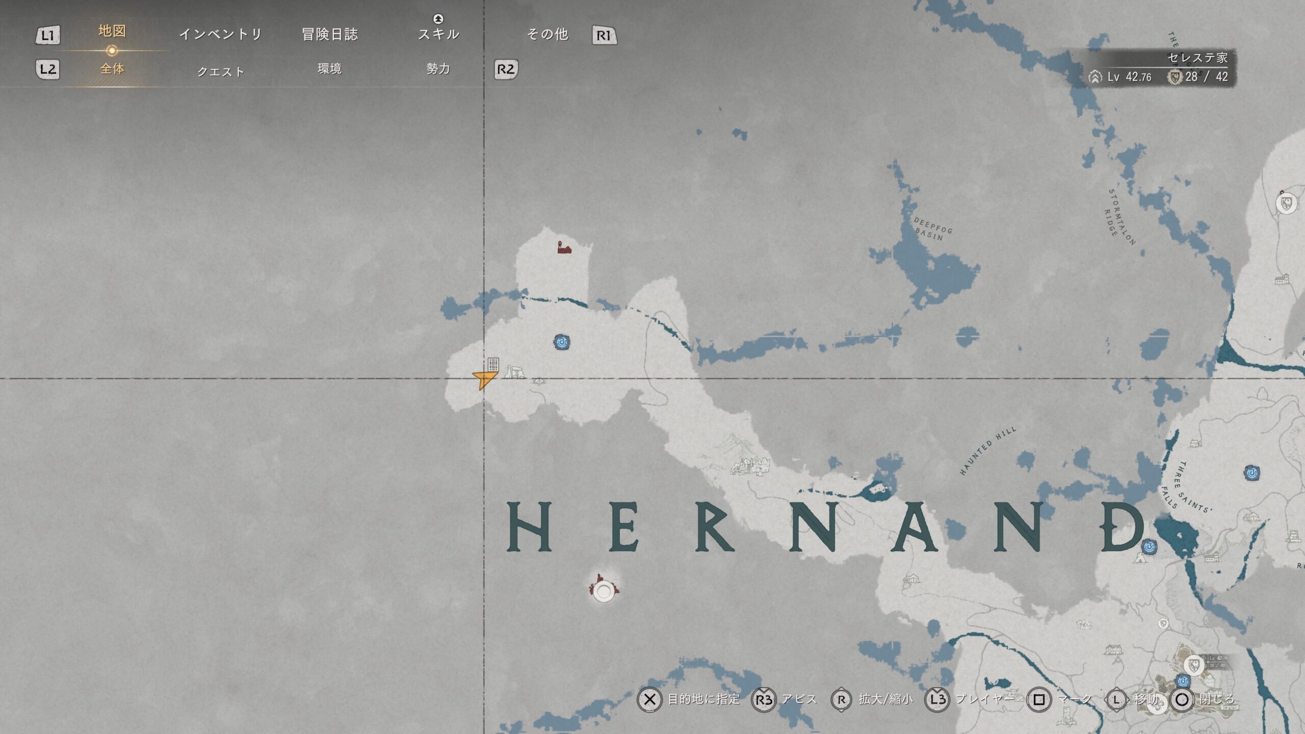 先に南側のファストトラベルを解放しておくと便利。