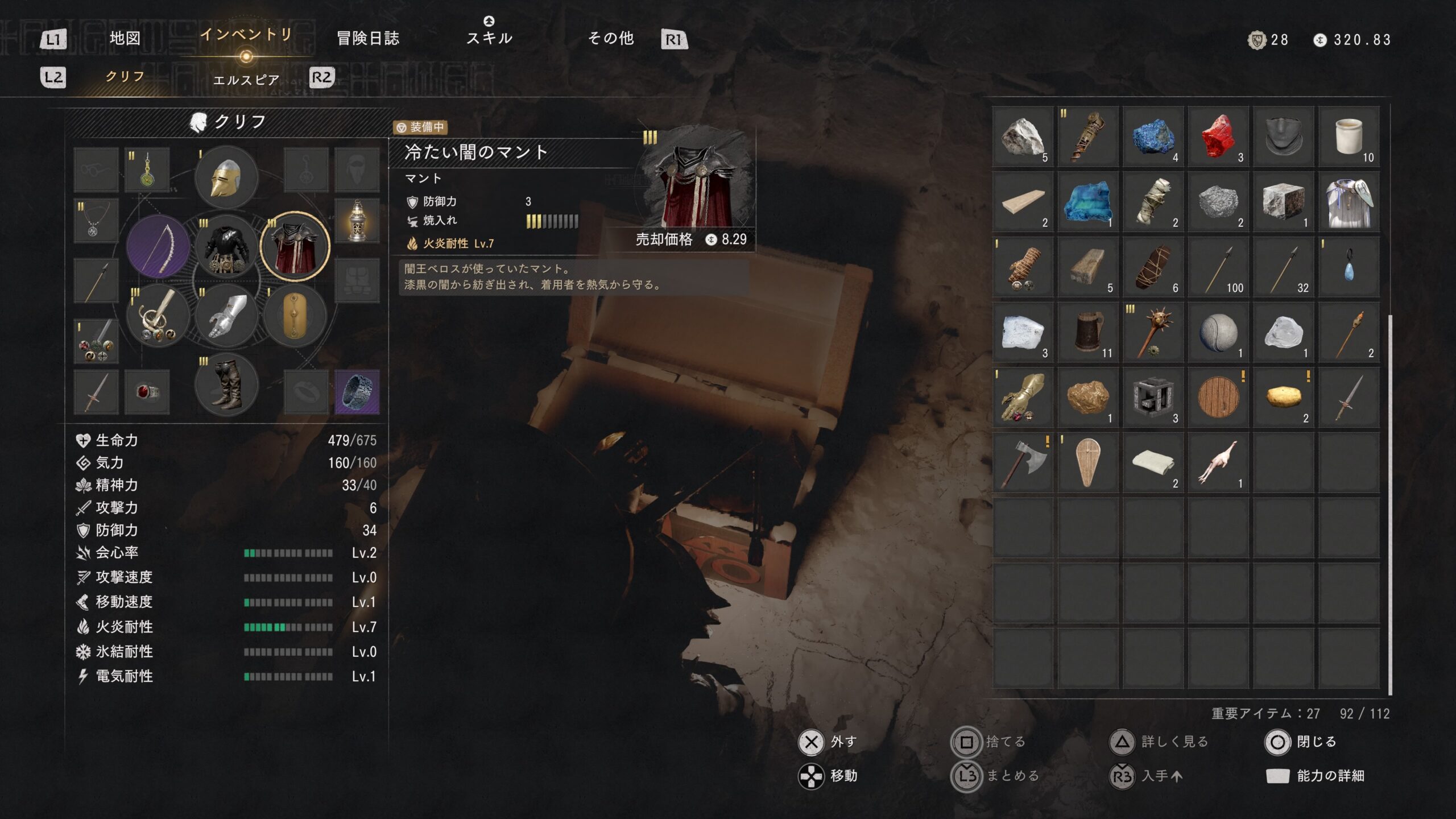 宝箱の中に「冷たい闇のマント」