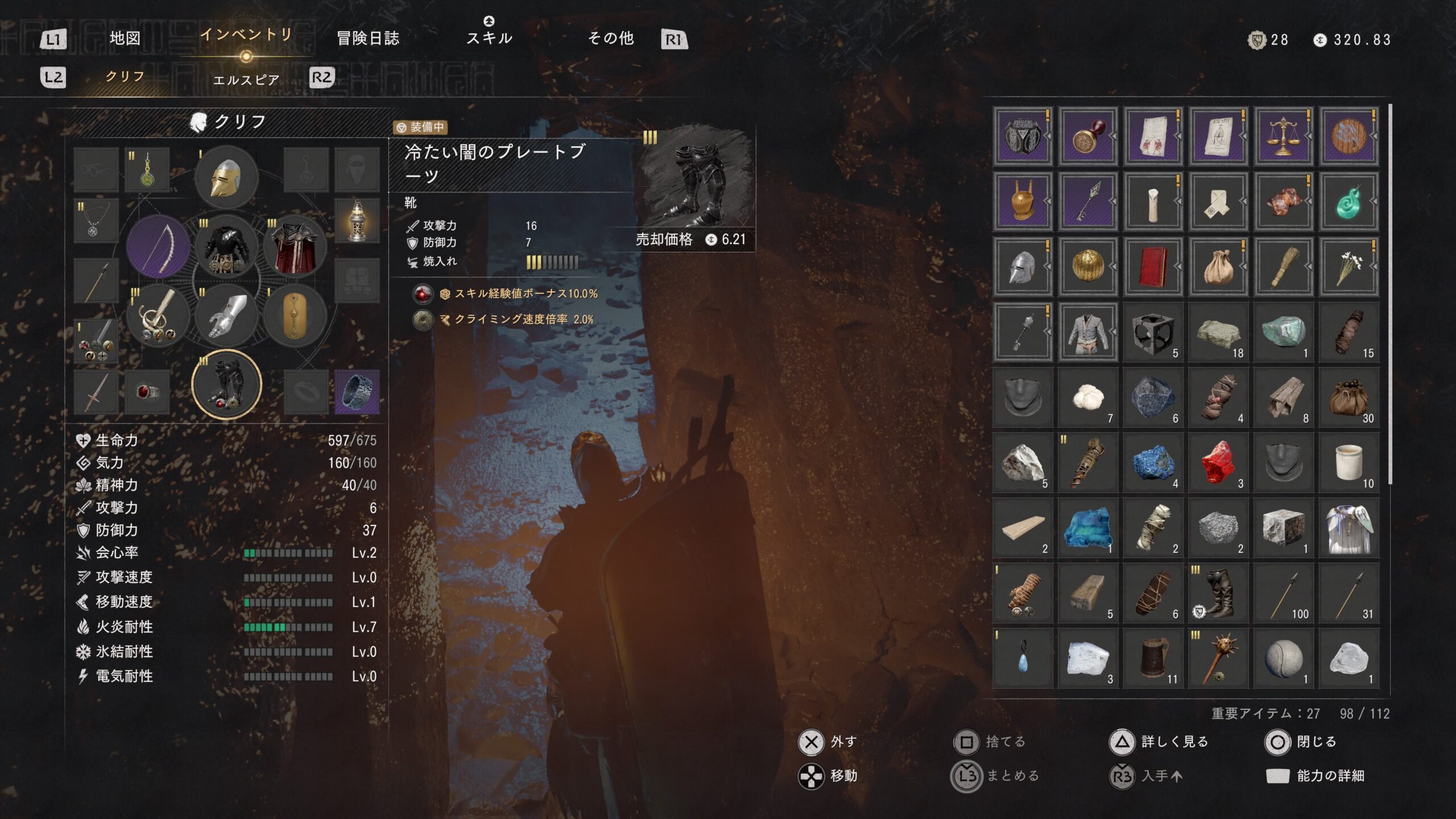 『紅の砂漠』冷たい闇装備シリーズ(マント・アーマー・グローブ・ブーツ)と闇のハルバードの入手方法。