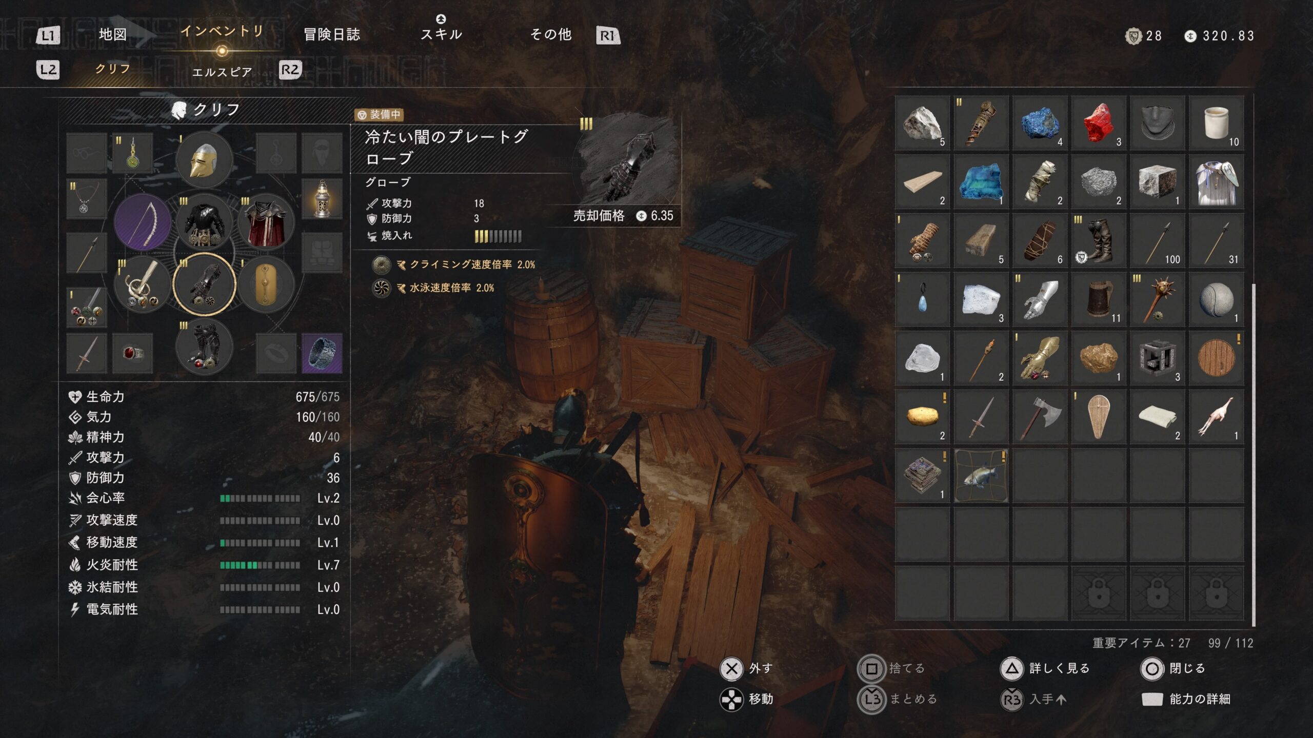 宝箱の中に「冷たい闇のプレートグローブ」
