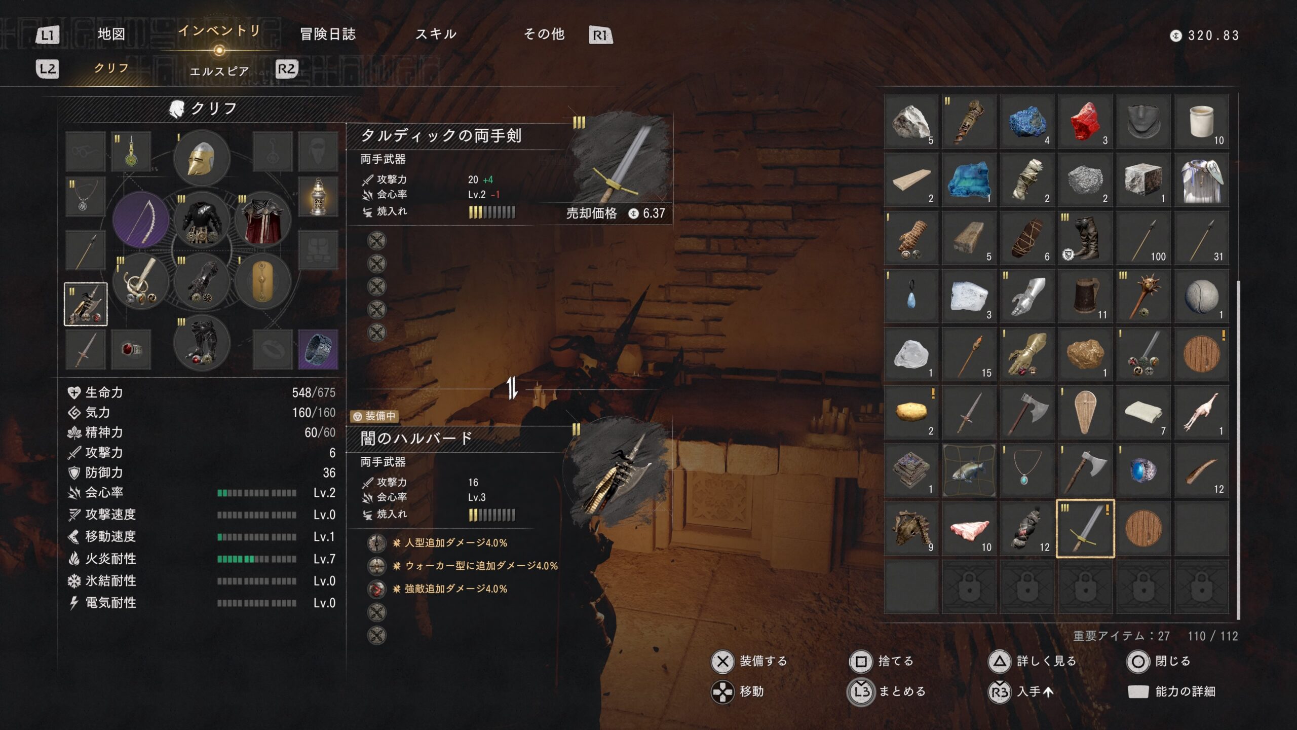 洞窟内に「タルディックの両手剣」