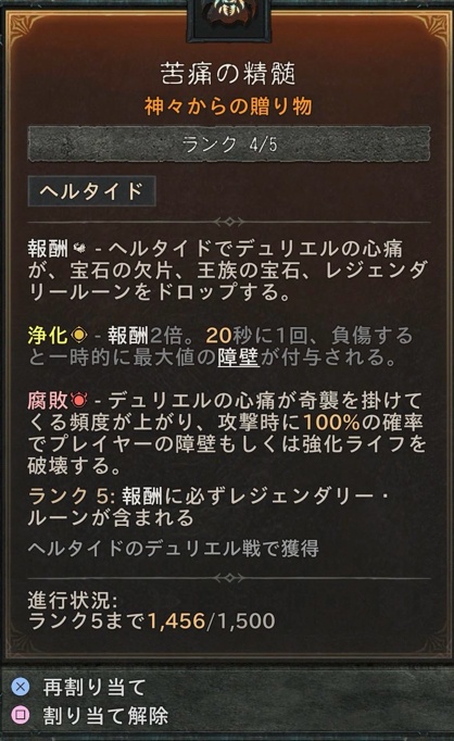 ただ、最初は腐敗だけ空いてて浄化がロックされてることからわかる通り序盤はデメリットだけだけど報酬が欲しい…って場面と