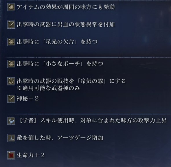 - 【学者】スキル使用時、対象に含まれた味方の攻撃力上昇