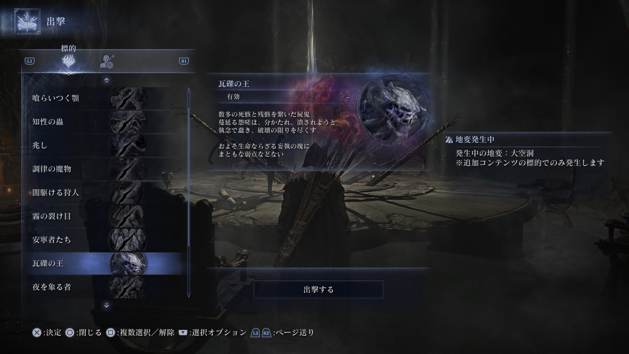 新DLCにて追加される新たな夜渡りの戦士「学者」「葬儀屋」や、未知の標的といったコンテンツを解禁するには、標的「三つ首の獣」を撃破する必要があります。