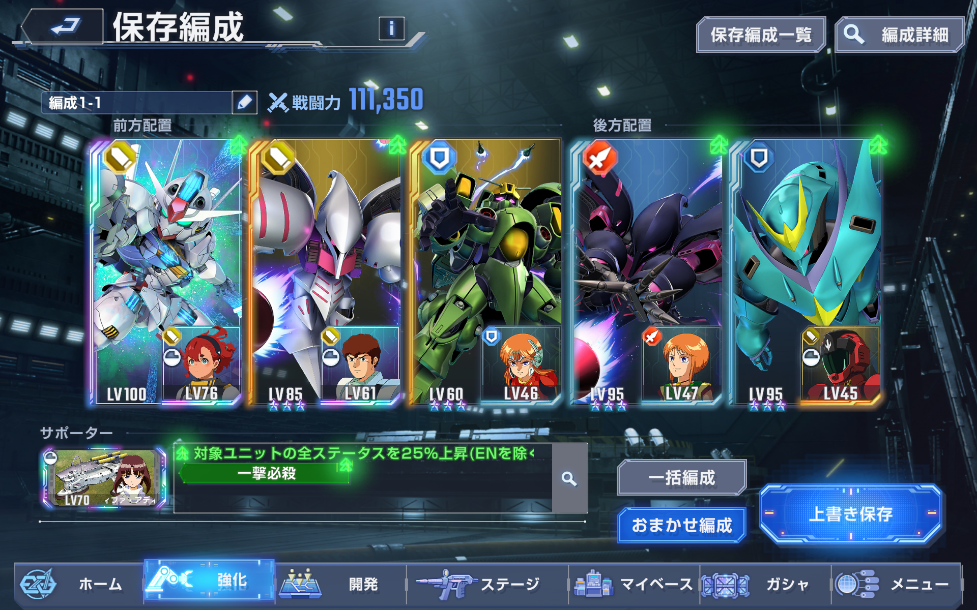 Sガンとかジェミナスみたいな高火力枠SSR を最大限活かすためにも支援攻撃2回飛ばせるパイロットが最重要だったなって印象ではある
