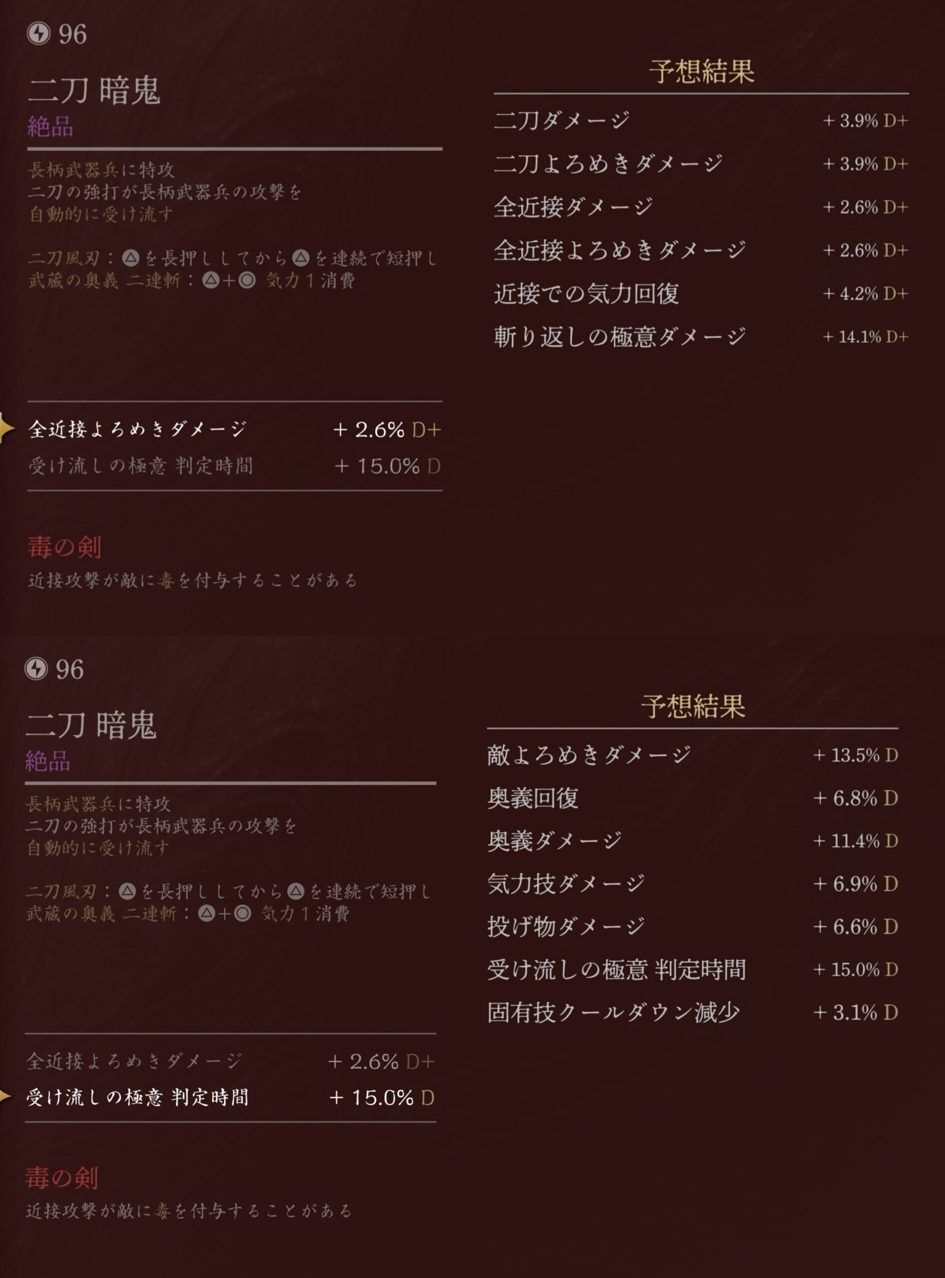 判定が高い二刀が落ちないから嵐光の方は70くらいでドロップしたのを強化してずっと使ってる