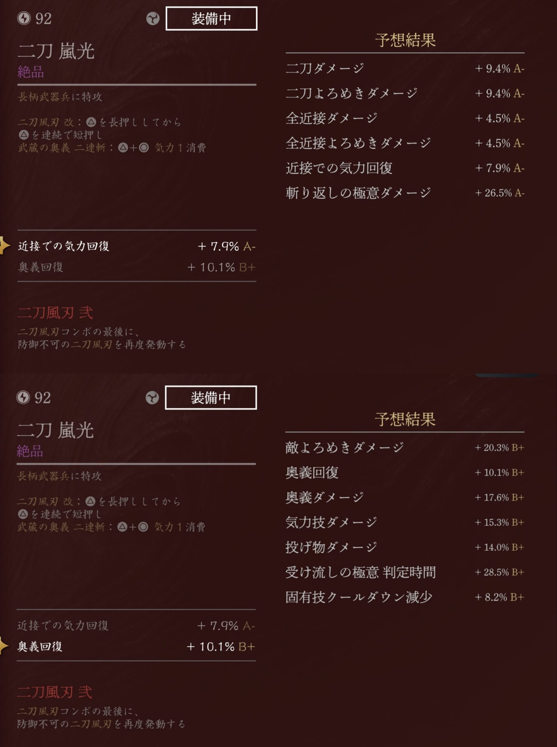 92の二刀(嵐光)→A-とB+
