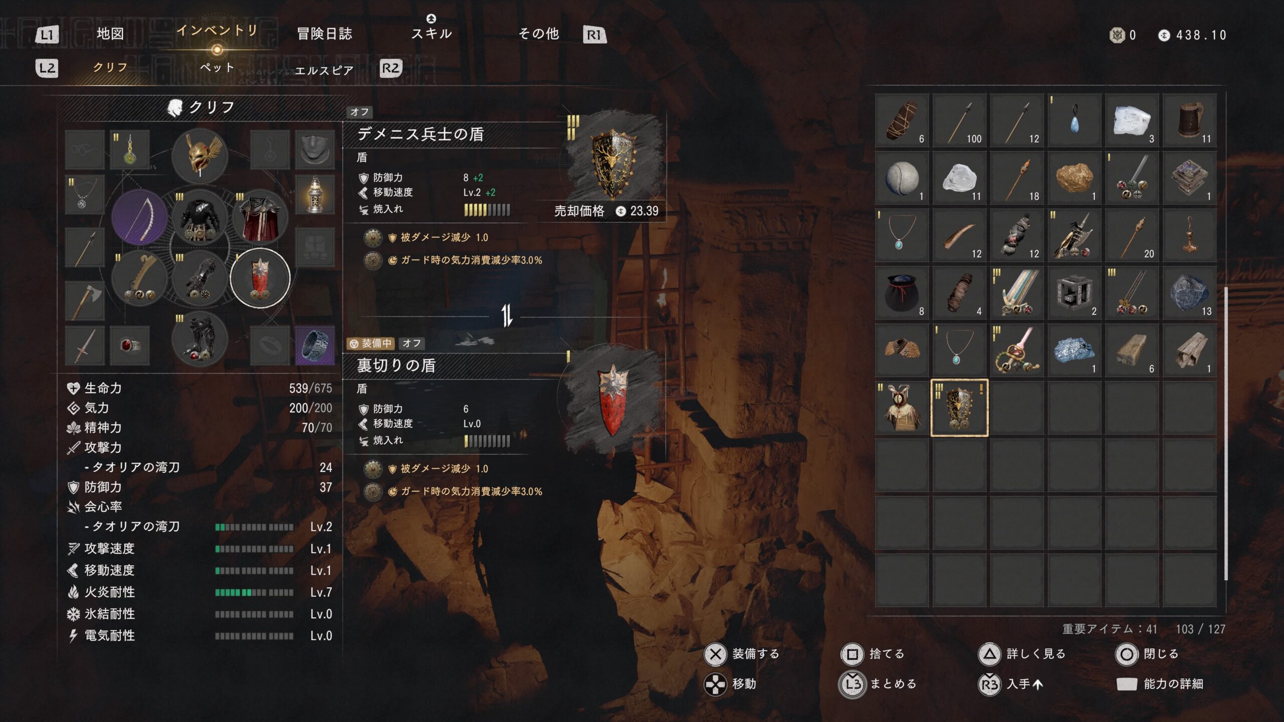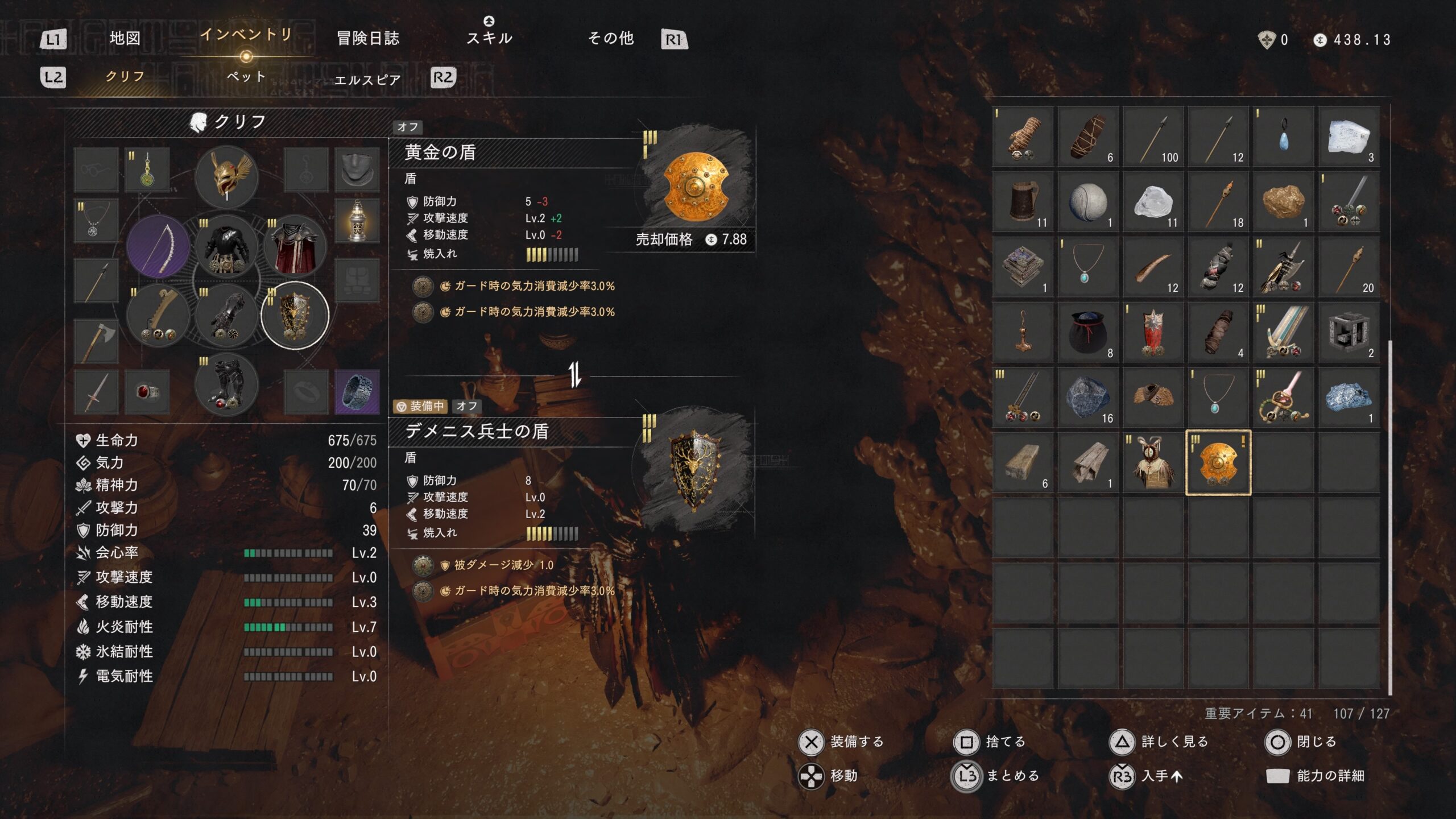 デメニスの盾の性能はこちら。