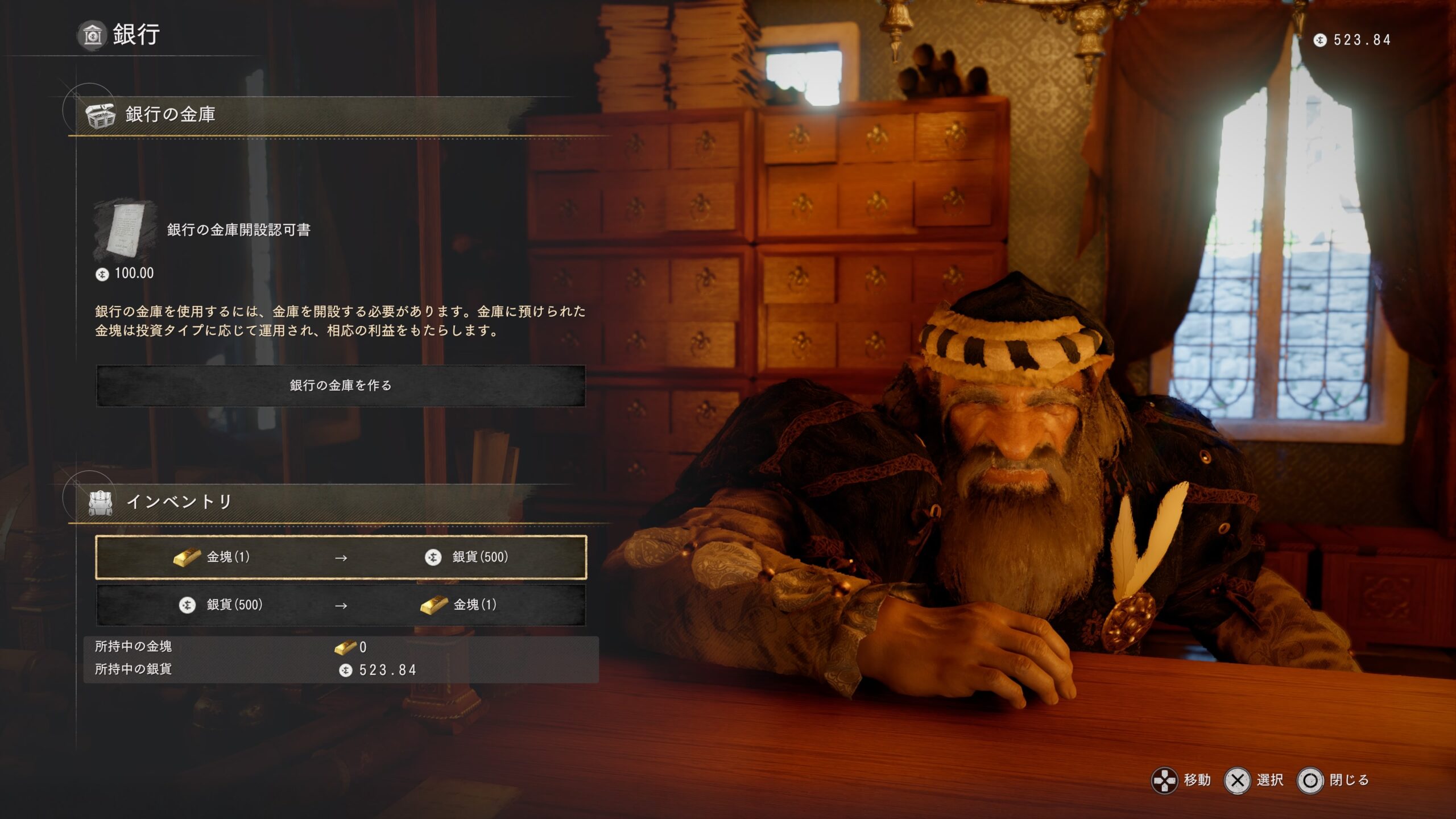 買い物やら拠点の寄付やらで金が貯まらんたまらん