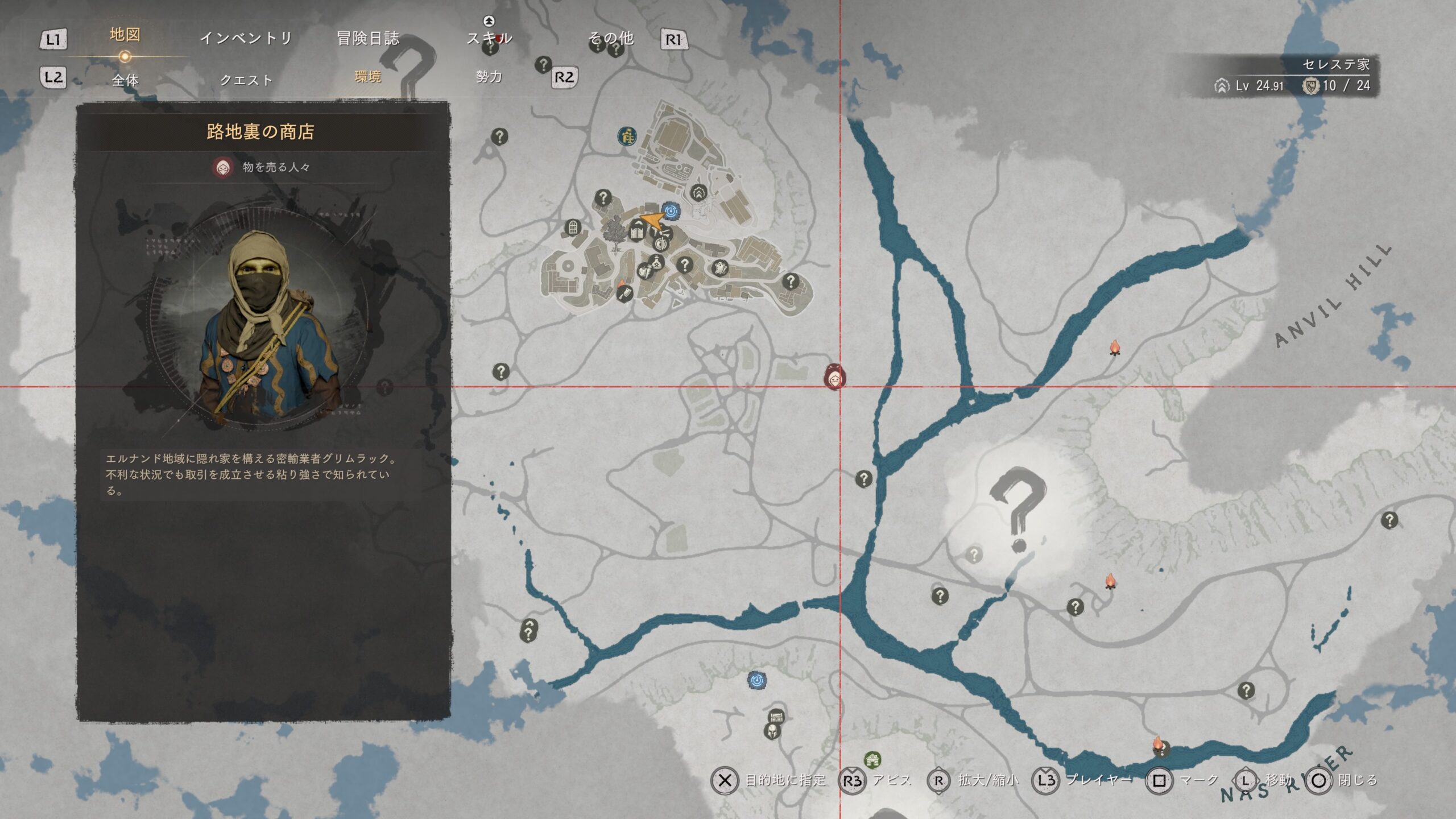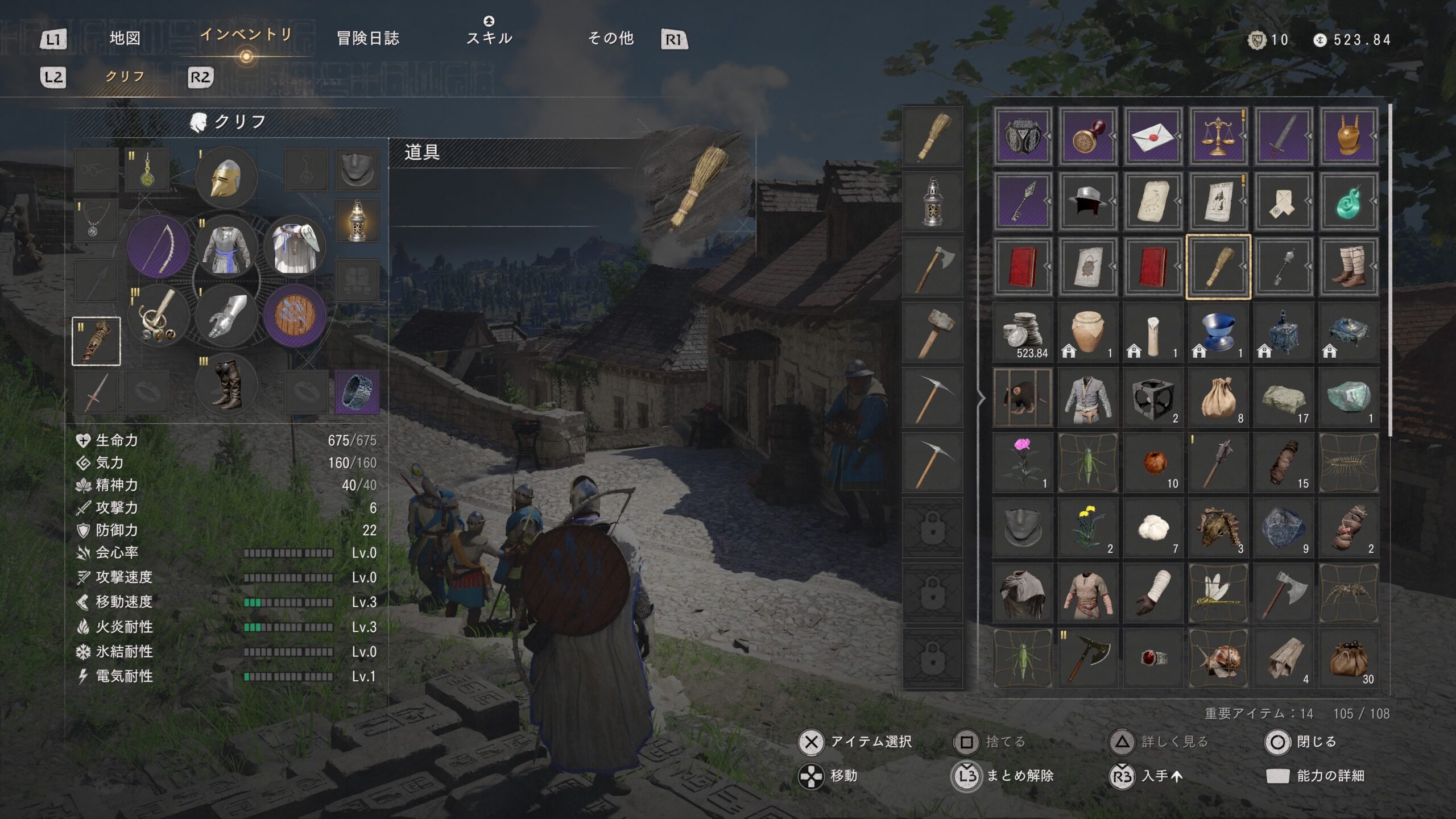 『紅の砂漠』序盤の金策・エルナンドの街での金塊(銀貨500)入手方法とインベントリ内カテゴリー別の並べ替え機能。