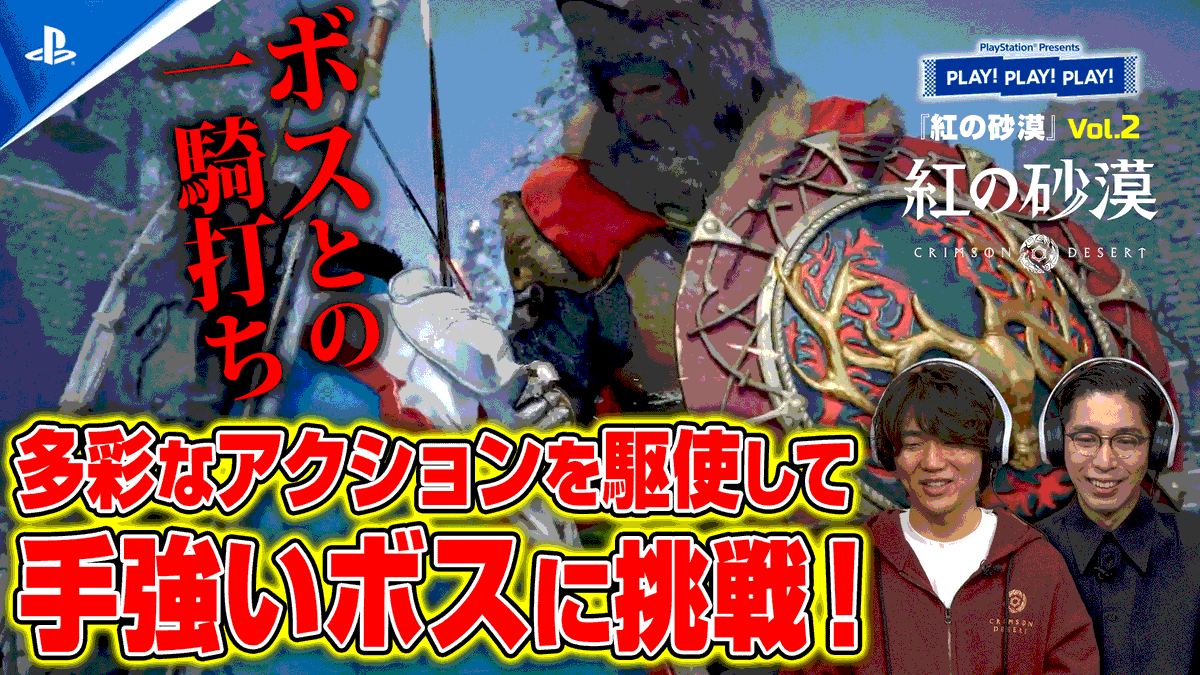 発売がいよいよ3月20日に迫る中、PlayStation Japanのトーク番組「PLAY! PLAY! PLAY!」にて、『紅の砂漠』の最新実機プレイ映像が公開されました。広大な「ファイウェル大陸」を舞台にした自由度の高い移動や、手に汗握るボスバトルの詳細をお伝えします。