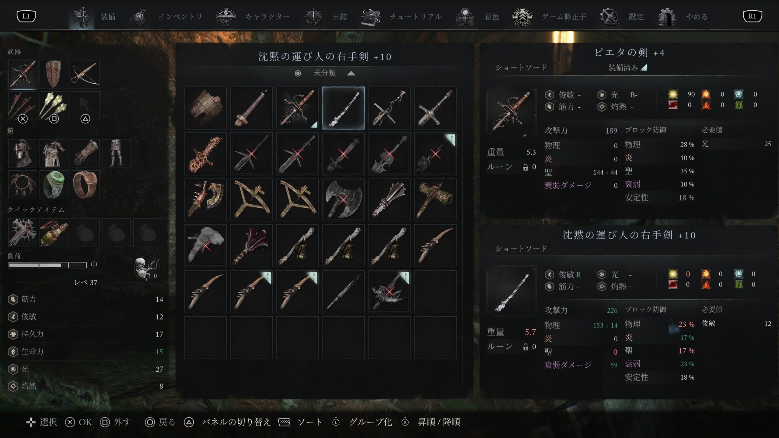 弱体化後民だけど、それでも途中ピエタから重武器使いたくてステータスも切り替えたけど