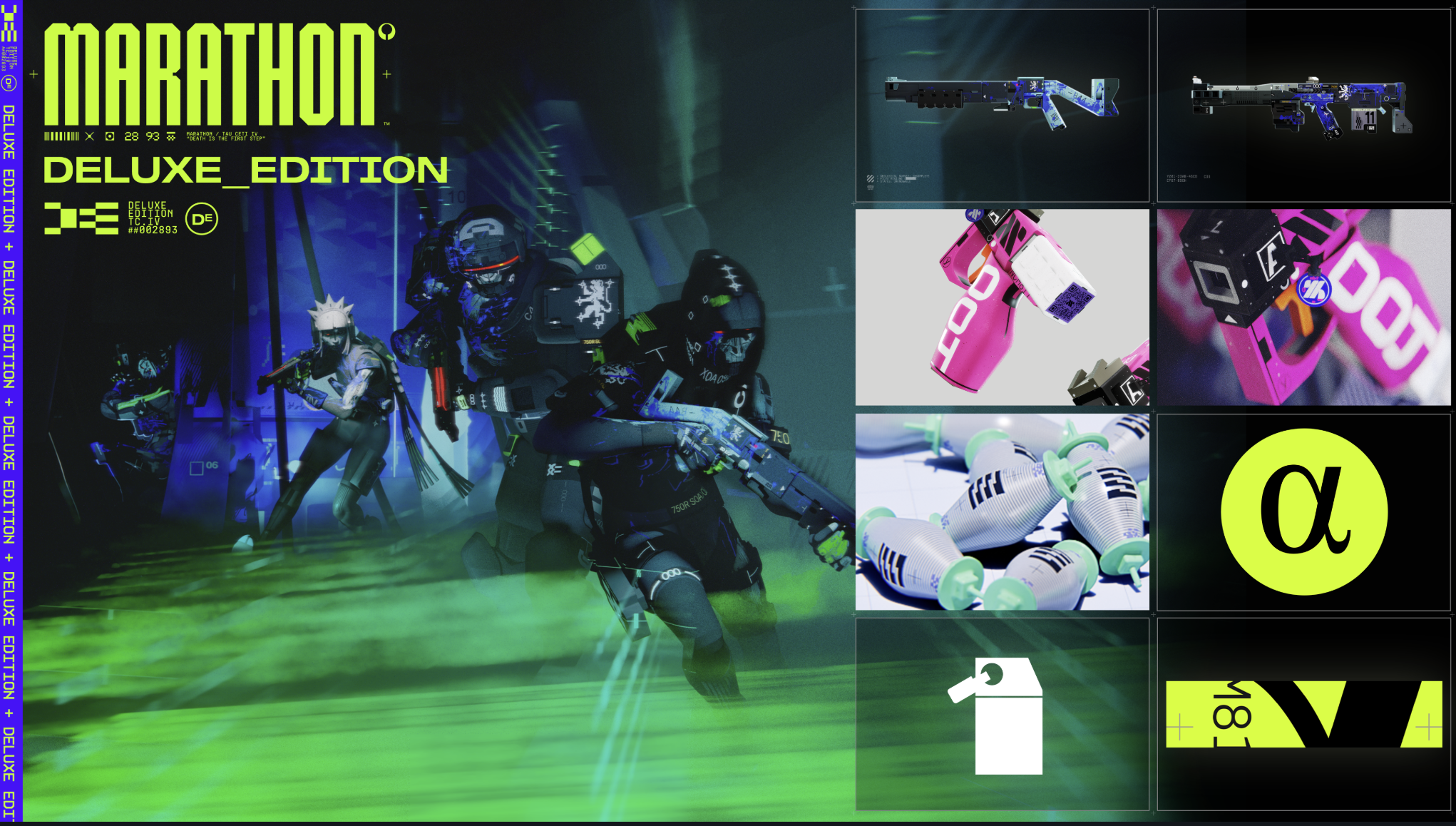 『Marathon』は通常版・デラックス版での発売が予定されており、予約することで武器カスタム装飾、エンブレムなどの特典が付属する。また、予約特典には『Destiny 2』向けのゲーム内アイテムも含まれる。コレクターズエディションも用意されており、ランナーシェル像やミニチュア、小物類が付属する豪華内容となっている。