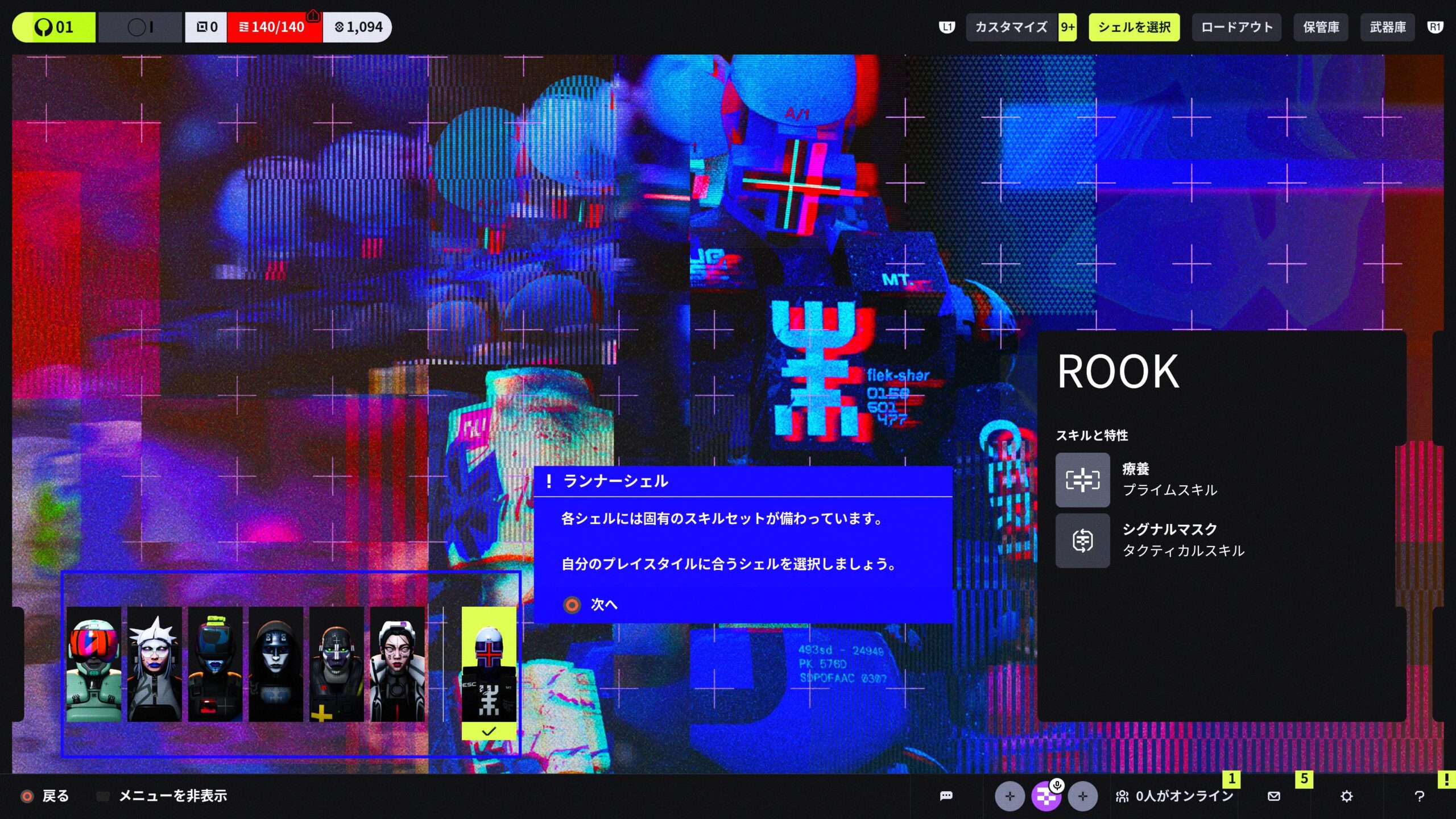 - シーフを含む、リリース時に登場する全6種のランナーシェル