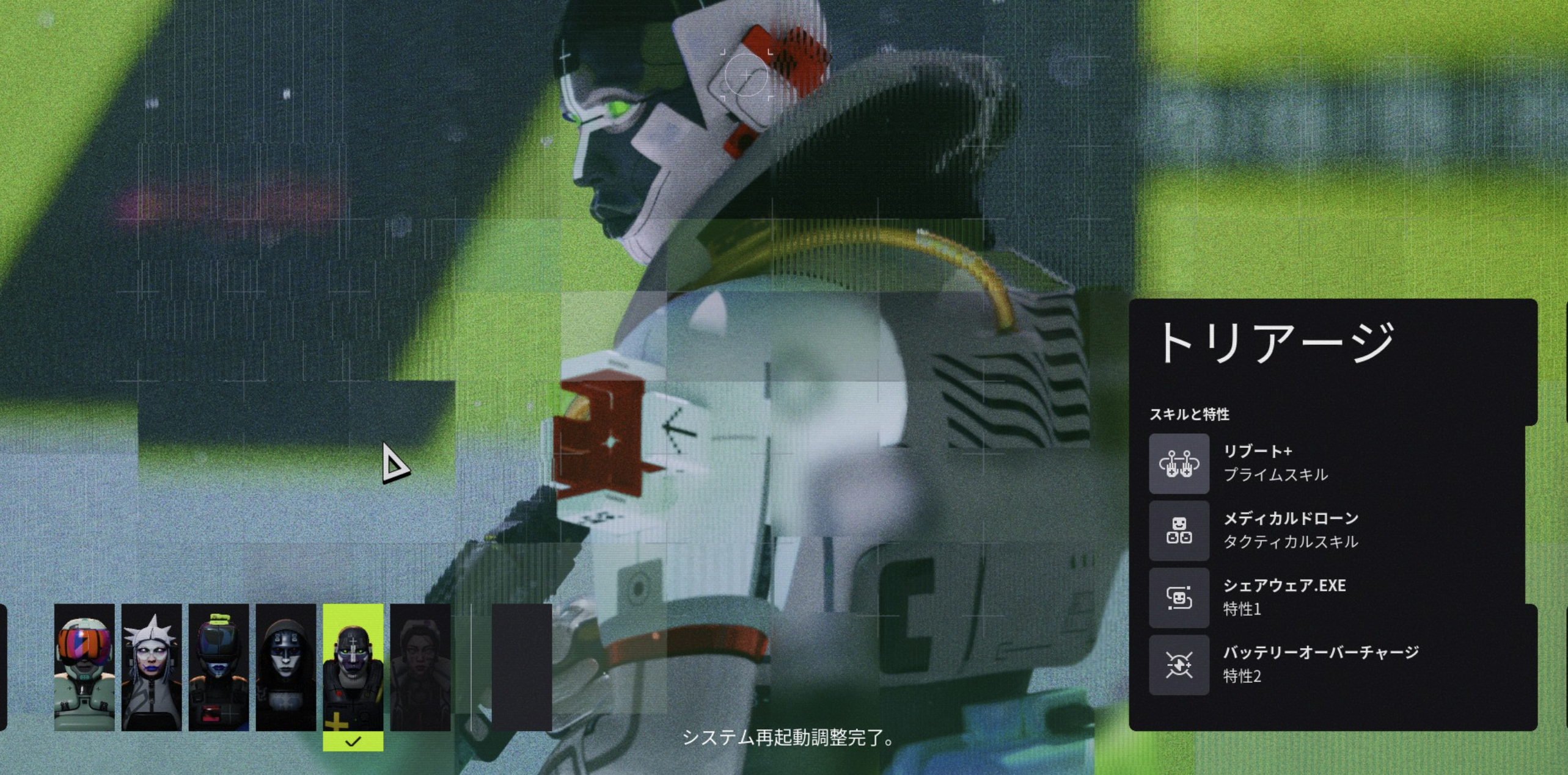 - 特徴:味方を回復するドローンや再起動能力、戦闘バフを持ち味方を支援する。チームプレイ向け。