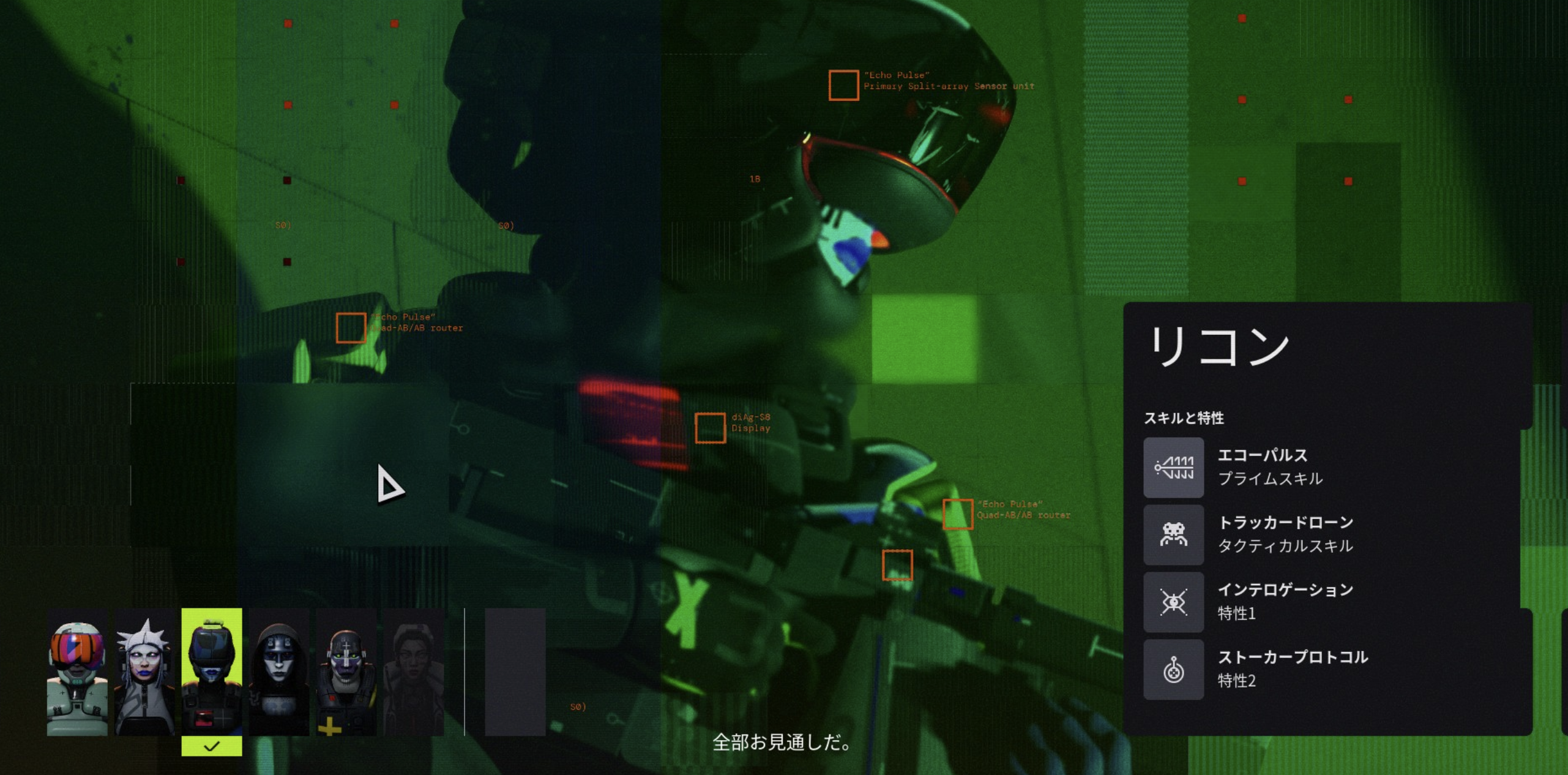 - 特徴:ドローンやエコーパルスで敵を追跡・マーキングし、姿勢を把握する能力に優れる。戦況把握に強い。