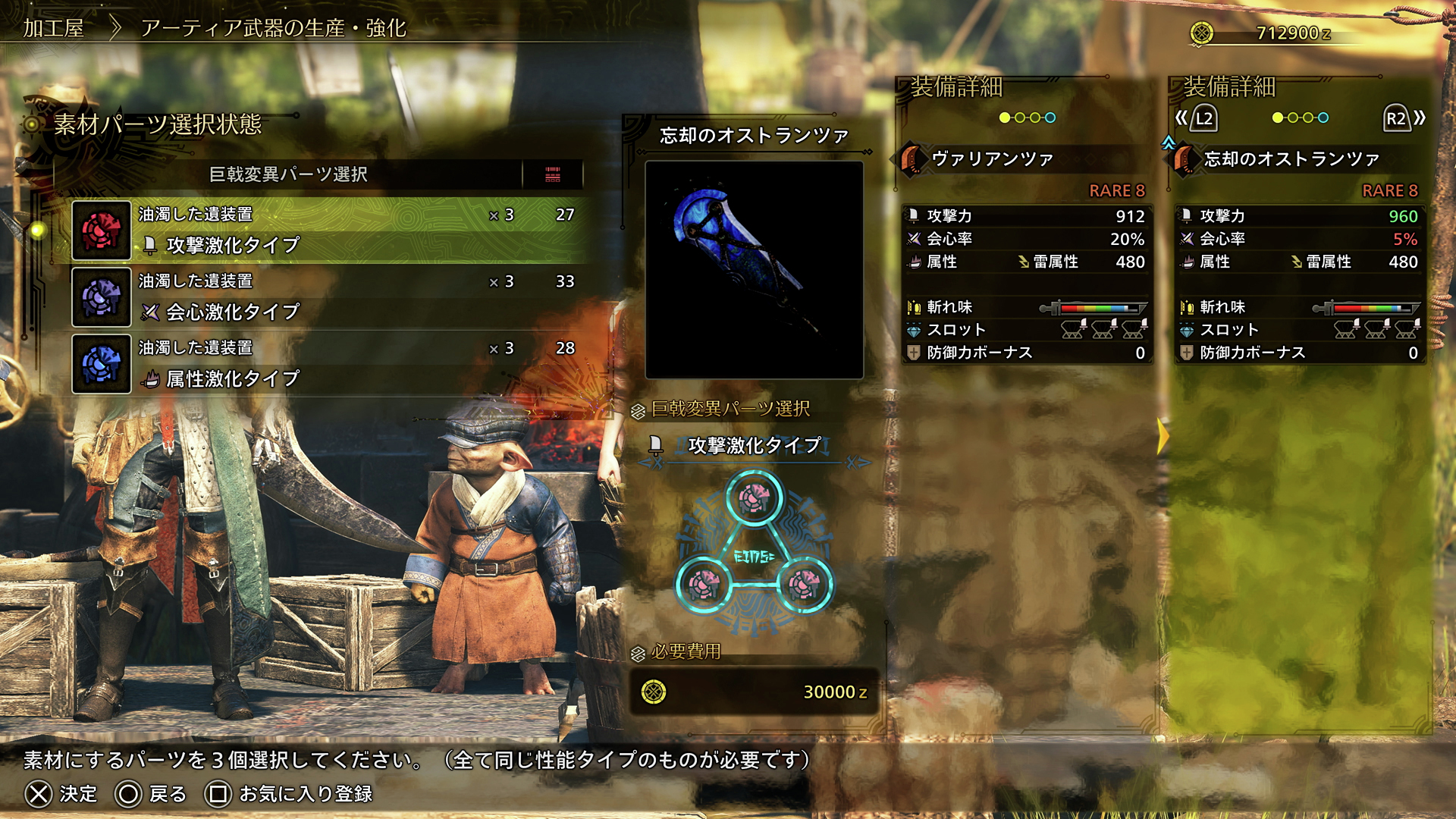 ある程度詳細が分かって理論値が分かってきたら、まず一旦攻撃4切れ味1みたいなのを作って 同じボーナスで復元で全てex狙う 無理だったらリセットして次の1本にかけるか続けるか