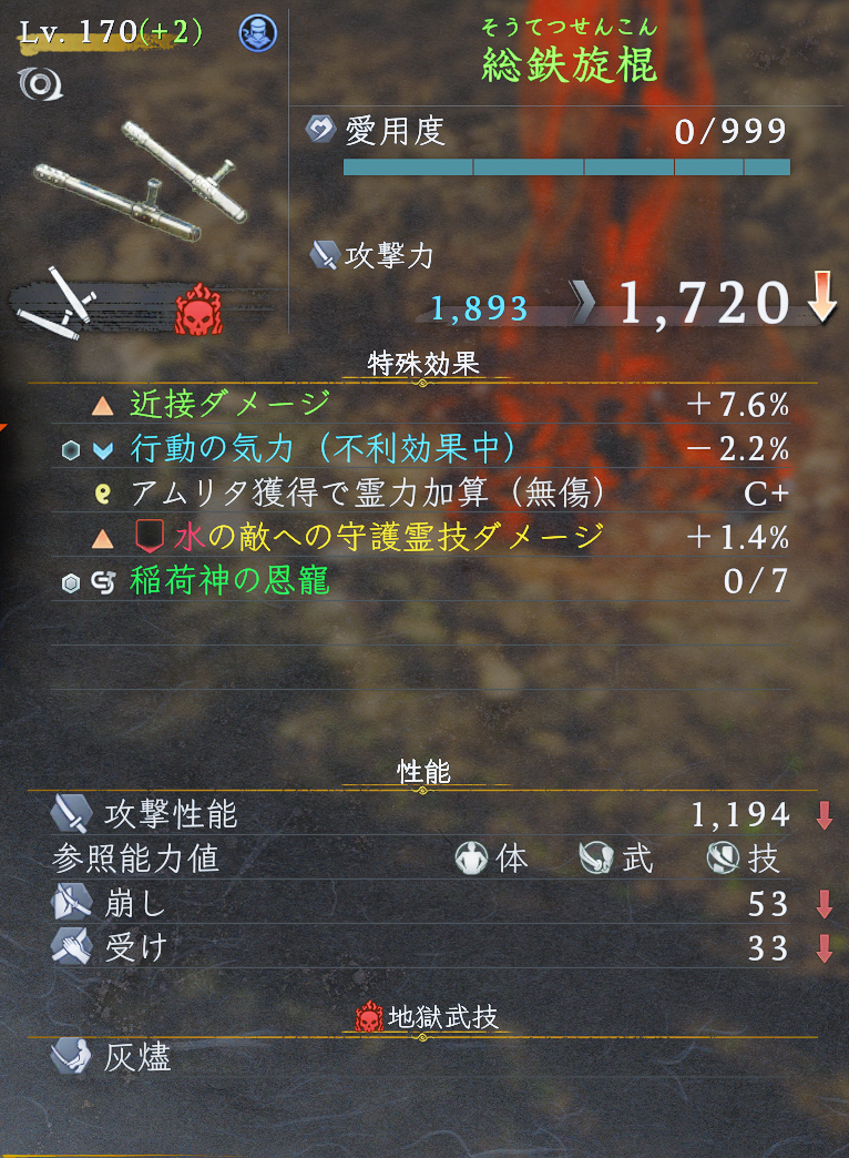2周目クリアしないと170出ないと思ってんだけど慶喜の地獄の道中で170武器出たわ