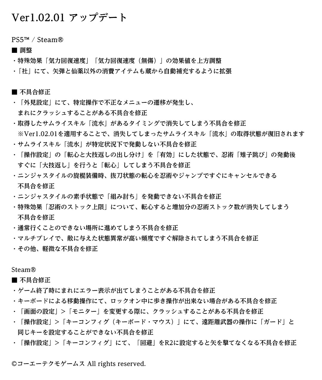 『仁王3』体験版アップデート(Ver1.02.01)配信のお知らせ。